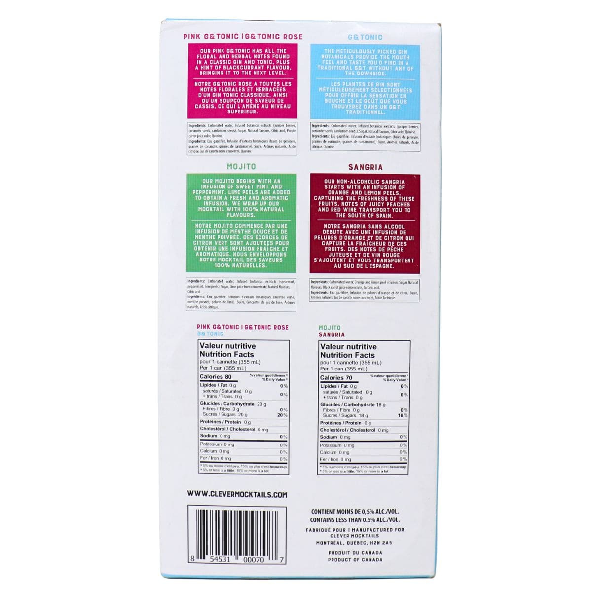 Mojito - Carbonated water, Infused botanical extracts (spearmint, peppermint, lime peels), Sugar, Lime juice from concentrate, Natural flavours, Citric acid