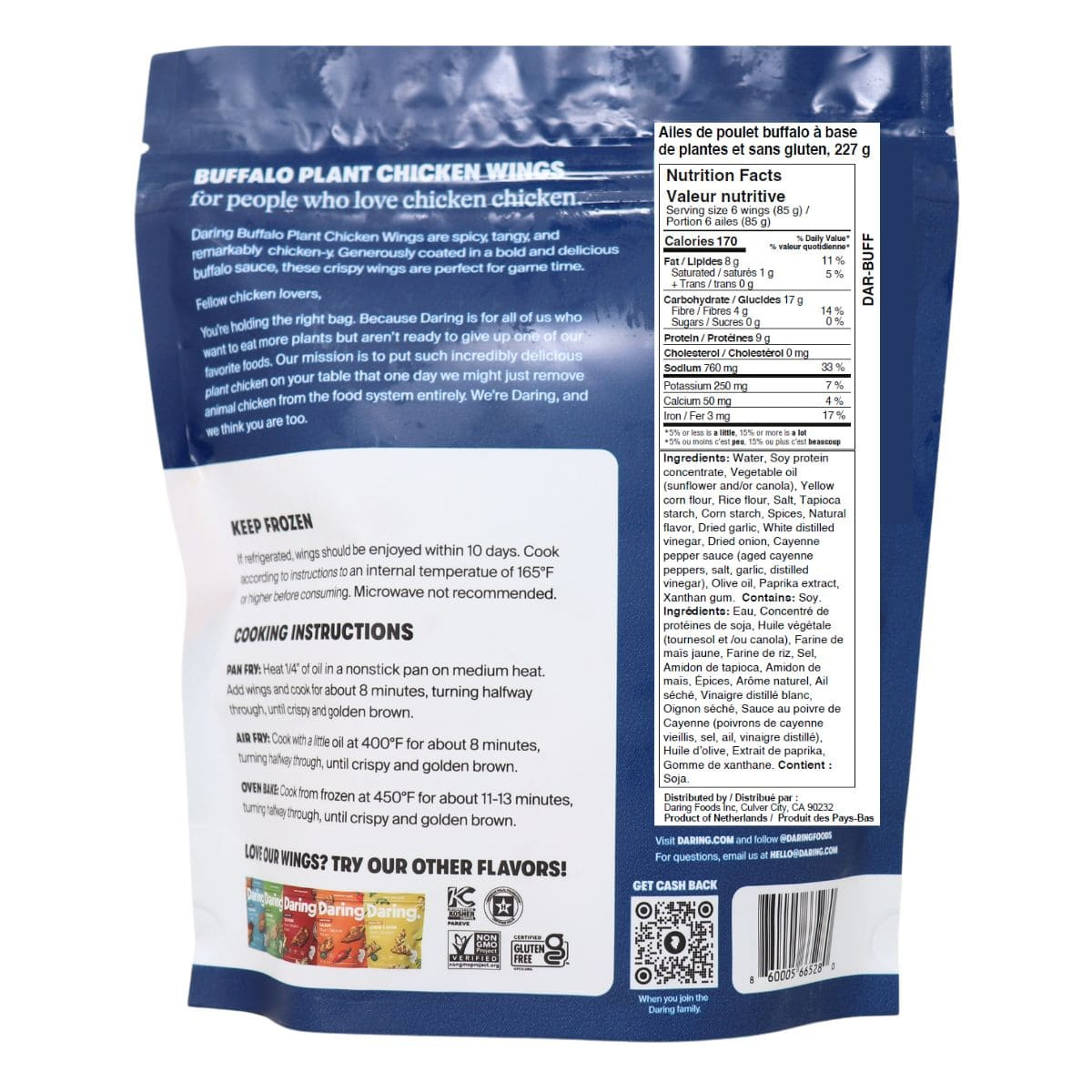 Game night just got a whole lot saucier with Daring’s Buffalo Chicken Wings! These vegan wings are the real MVP (Most Valuable Plant-based chicken, that is). Crispy on the outside, tender on the inside. And 100% plant-based! These vegan chicken wings are a win for vegans, vegetarians and anyone who loves big flavor without the meat. Coated in a tangy, spicy buffalo sauce that brings the perfect kick. Plus, 9g of protein per serving and totally gluten-free, you can now feel good about getting your wing on!