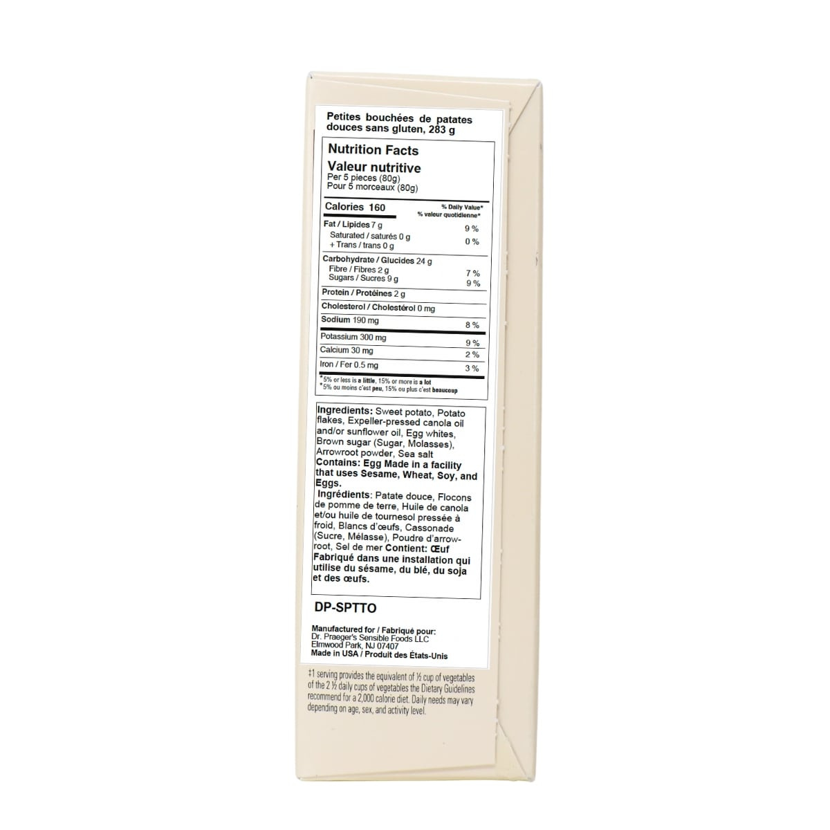Sweet potato, Potato flakes, Expeller-pressed canola oil and/or sunflower oil, Egg whites, Brown sugar (Sugar, Molasses), Arrowroot powder, Sea salt