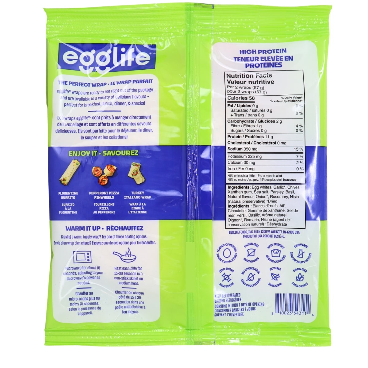 Wraps, reimagined! Egglife Roasted Garlic & Herb Egg White Wraps are the flavour-packed, flour-free upgrade your meals have been waiting for. Made with cage-free egg whites instead of flour, these wraps are light, fluffy, and loaded with protein, not carbs.