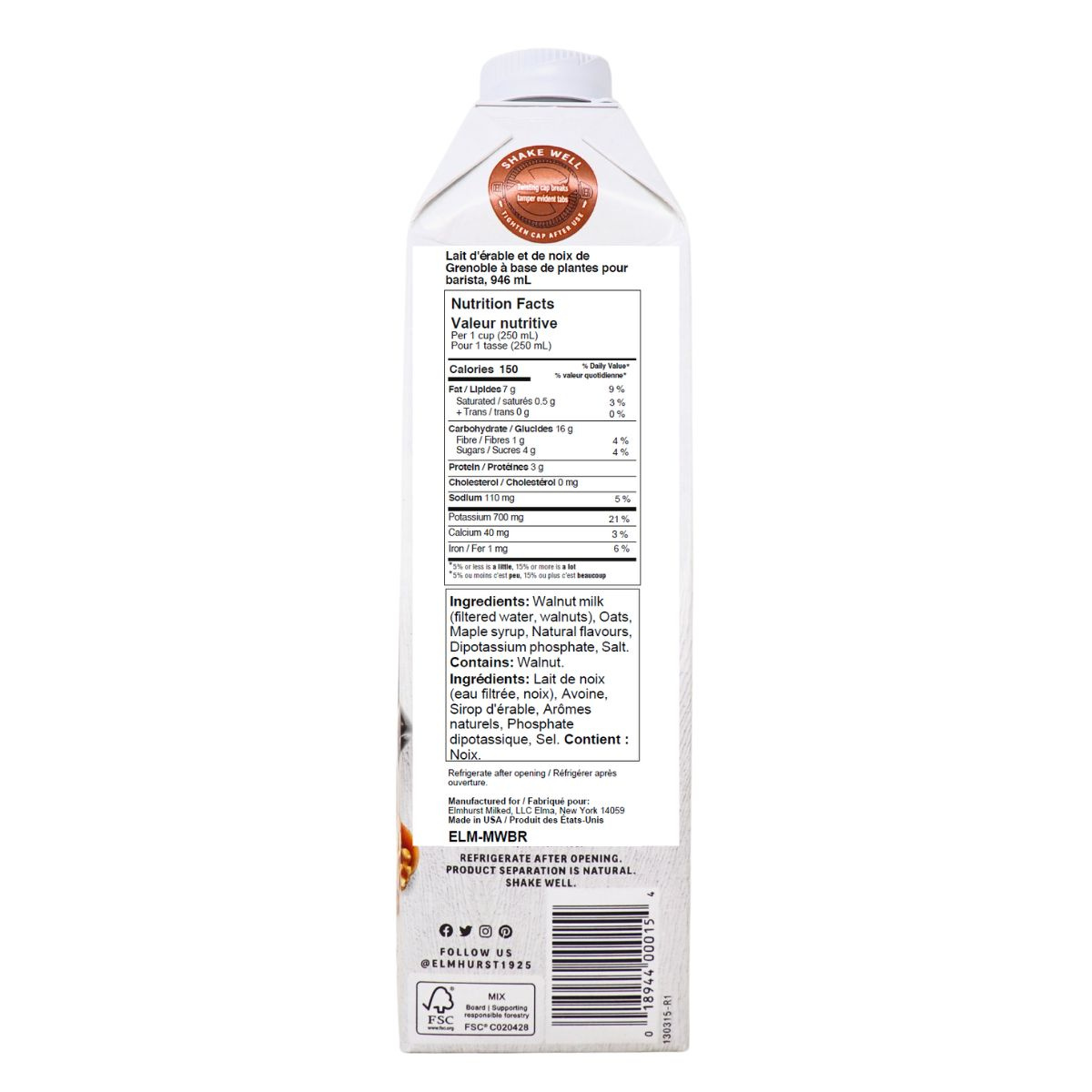 Elmhurst Plant-Based Maple Walnut Barista Edition, 946ml