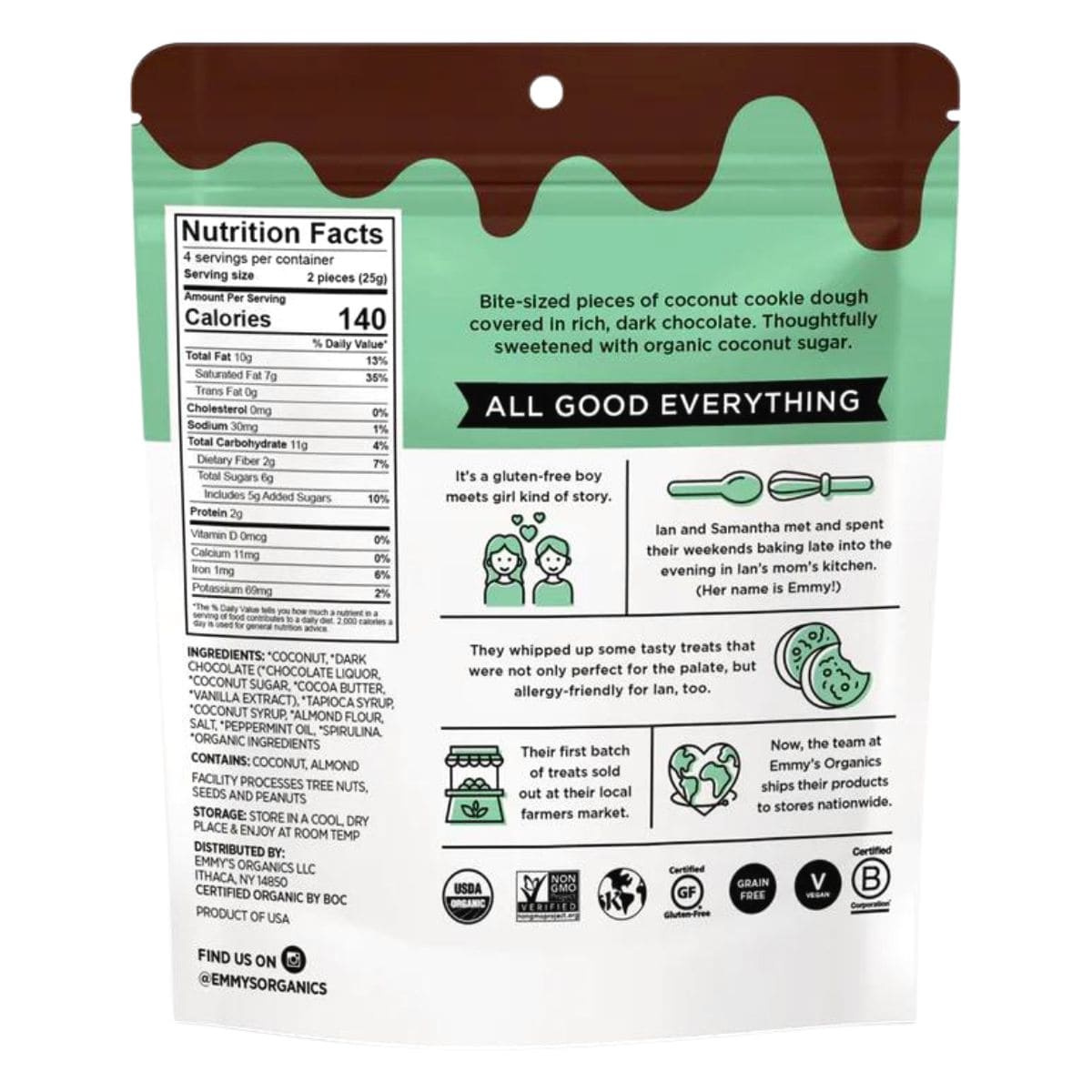 Emmy's Organic Grain-Free Chocolate Covered Coconut Cookie Bites Mint, 100g