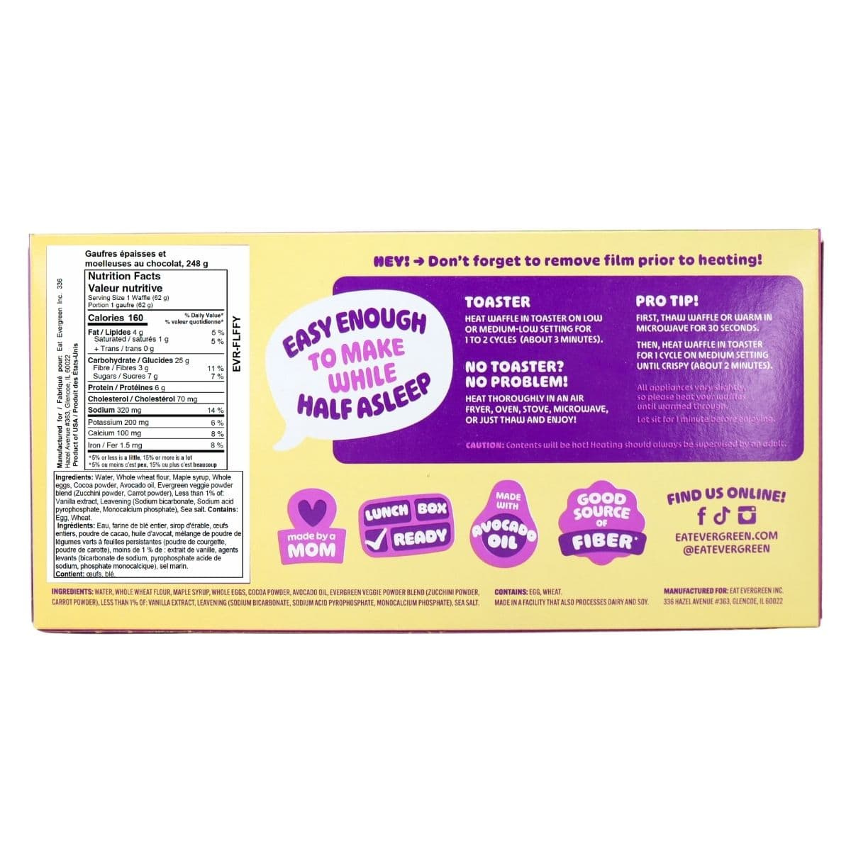 Made with thoughtfully sourced ingredients, packed with veggies, and designed for convenience, they heat up quickly in the toaster or oven for an easy, satisfying meal or snack. Whether you enjoy them plain, topped with fruit, or layered into a decadent waffle stack, these chocolate waffles deliver comfort, indulgence, and that just-baked feeling straight from the freezer.