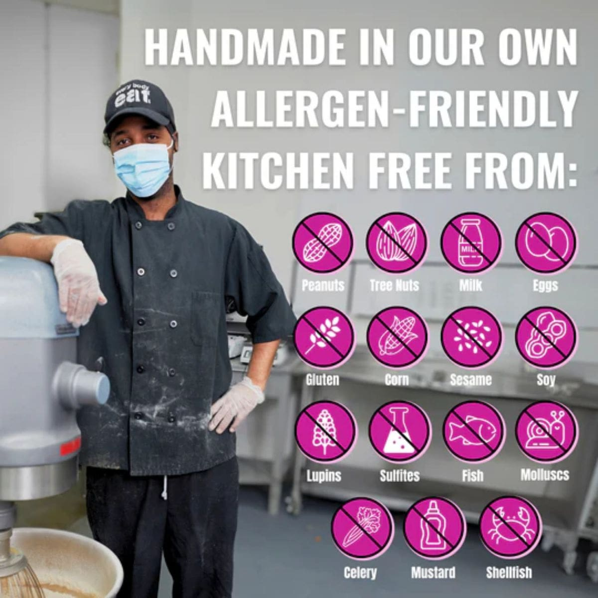 Everybody, come gather 'round! Every Body Eat's chocolate chip cookie bites are here to bring back the joy of chocolate chip cookies. Of course, with a better-for-you twist! Each bite delivers the classic chocolatey sweetness you crave in a crunchy-then-chewy texture that’s pure bliss. Made with high-quality, allergen-free ingredients lke oat flour, maple sugar, and flax seed, these chocolate chip cookies are gluten-free, vegan, dairy-free, nut-free, and egg-free...basically, it's a treat that EVERY BODY can enjoy. Perfect for school-safe lunches, afternoon pick-me-ups, or late-night cravings, these allergen-free cookies are a delicious way to indulge without any worry. Nostalgia never tasted so clean - and so good!