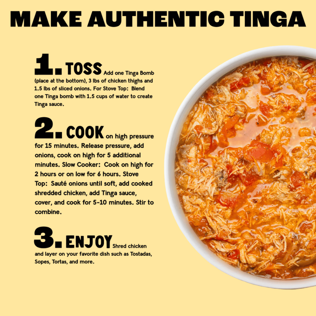 Gluten-free and dairy-free, this spice bomb is ready to feed the whole family with ease, and lets you enjoy the smoky heat and vibrant flavours of tinga anytime. The time spending hours in the kitchen are over, and the time to enjoy some really delicious homemade chicken Tinga is now.