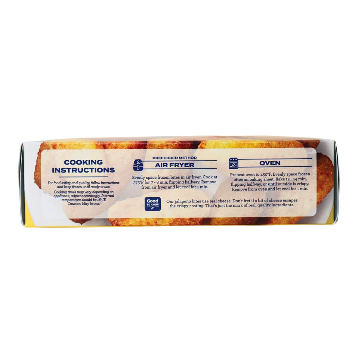 Cream Cheese Filling (Cream Cheese [Milk And Cream, Salt, Xanthan And/Or Carob And/Or Guar Gum], Milk, Jalapenos, White Cheddar Cheese [Pasteurized Milk, Cultures, Salt, Enzymes], Cheddar Cheese Powder [Pasteurized Milk, Salt, Cheese Culture, Enzymes], Corn Starch, Vinegar, Salt, Black Pepper), Breading (Rice Flour, Tapioca Starch, Water, Xanthan Gum, Cane Sugar, Yeast, Leavening [Sodium Acid Pyrophosphate, Baking Soda], Salt, Spices, Dehydrated Garlic, Dehydrated Onion), Canola Oil.