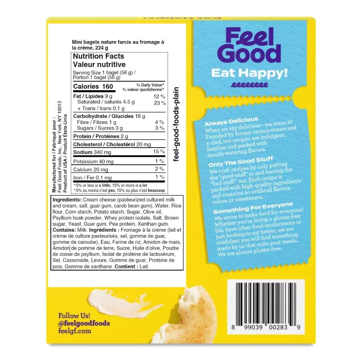 Feel Good Foods Gluten-Free Mini Plain Bagels Stuffed With Cream Cheese, 224g