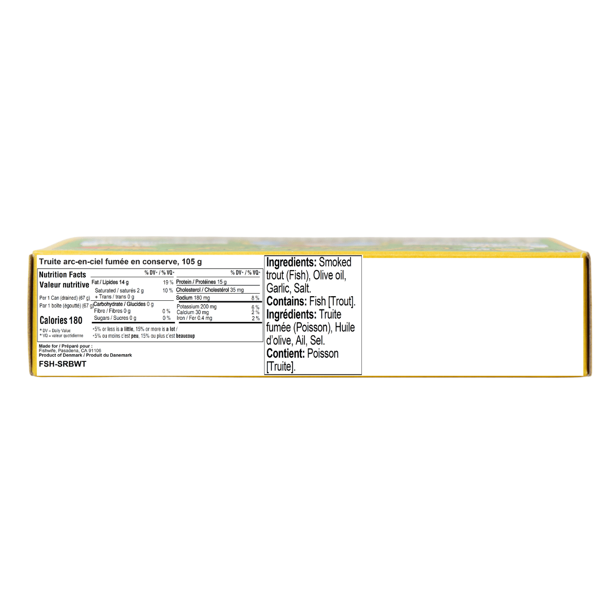 Smoked trout (Fish), Olive oil, Garlic, Salt.