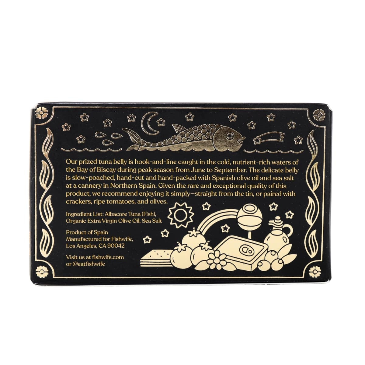 The Fishwife Tinned Fish Tuna Belly is a rich, buttery delicacy that showcases the most tender and flavorful cut of the tuna. Sustainably caught, hand-cut and packed, each tin highlights the melt-in-your-mouth texture of the tuna belly, perfectly seasoned, slow-poached, and packed in high-quality Spanish olive oil. This isn’t your average canned tuna; it’s an elevated pantry staple made for grazing boards or straight from the tin.