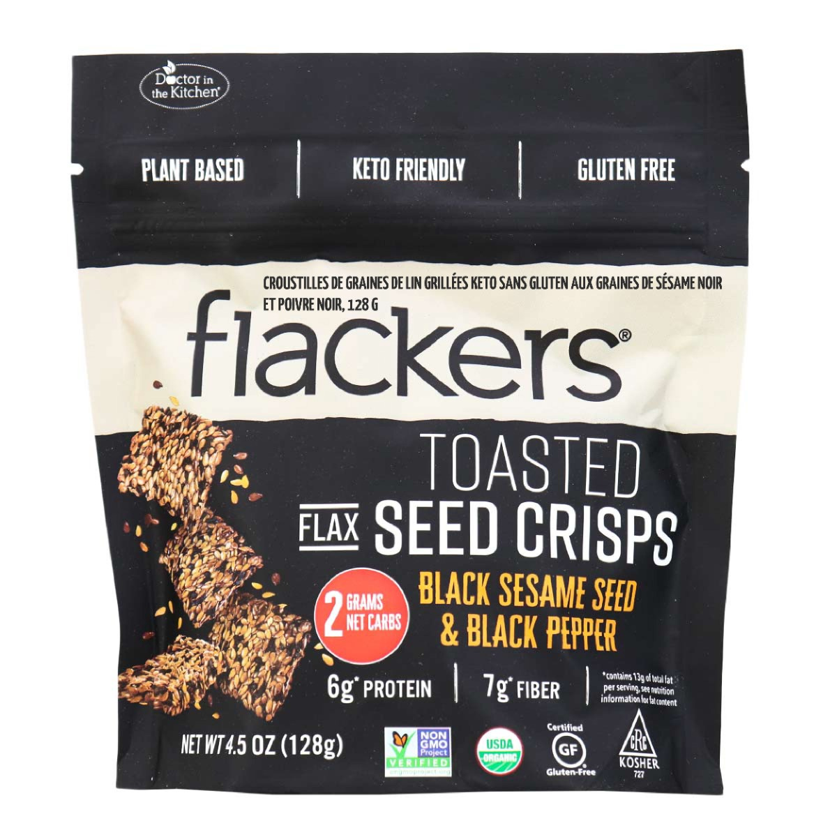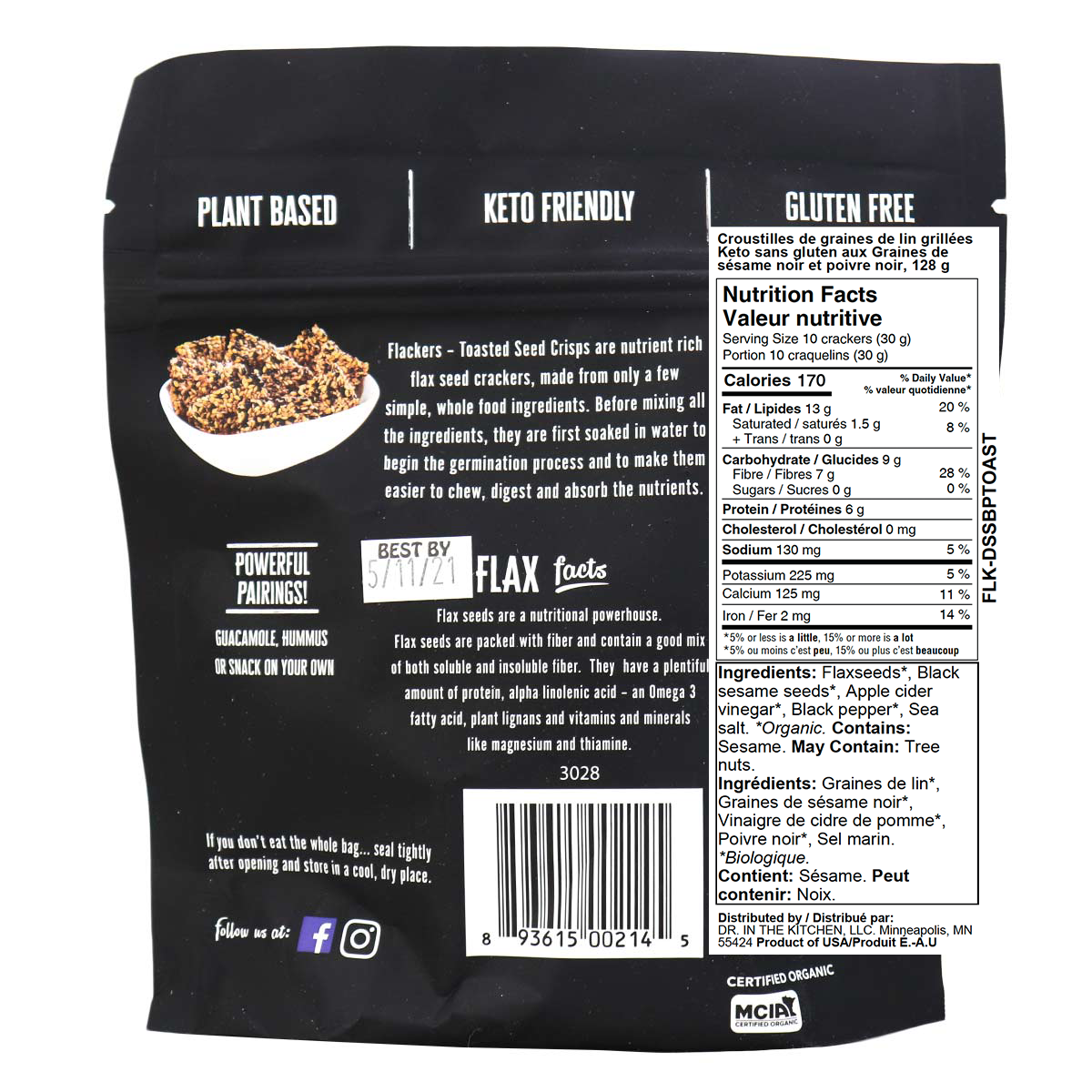 Flackers Gluten-Free Keto Toasted Flax Seed Crisps Black Sesame Seed & Black Pepper, 128g
