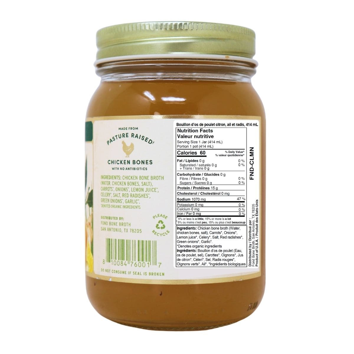 With FOND Bone Broth Chicken Lemon, Garlic & Radish, you get cozy depth with a clean, citrus finish that keeps meals feeling bright. Just open the jar, heat, and serve. It’s comfort, done right.