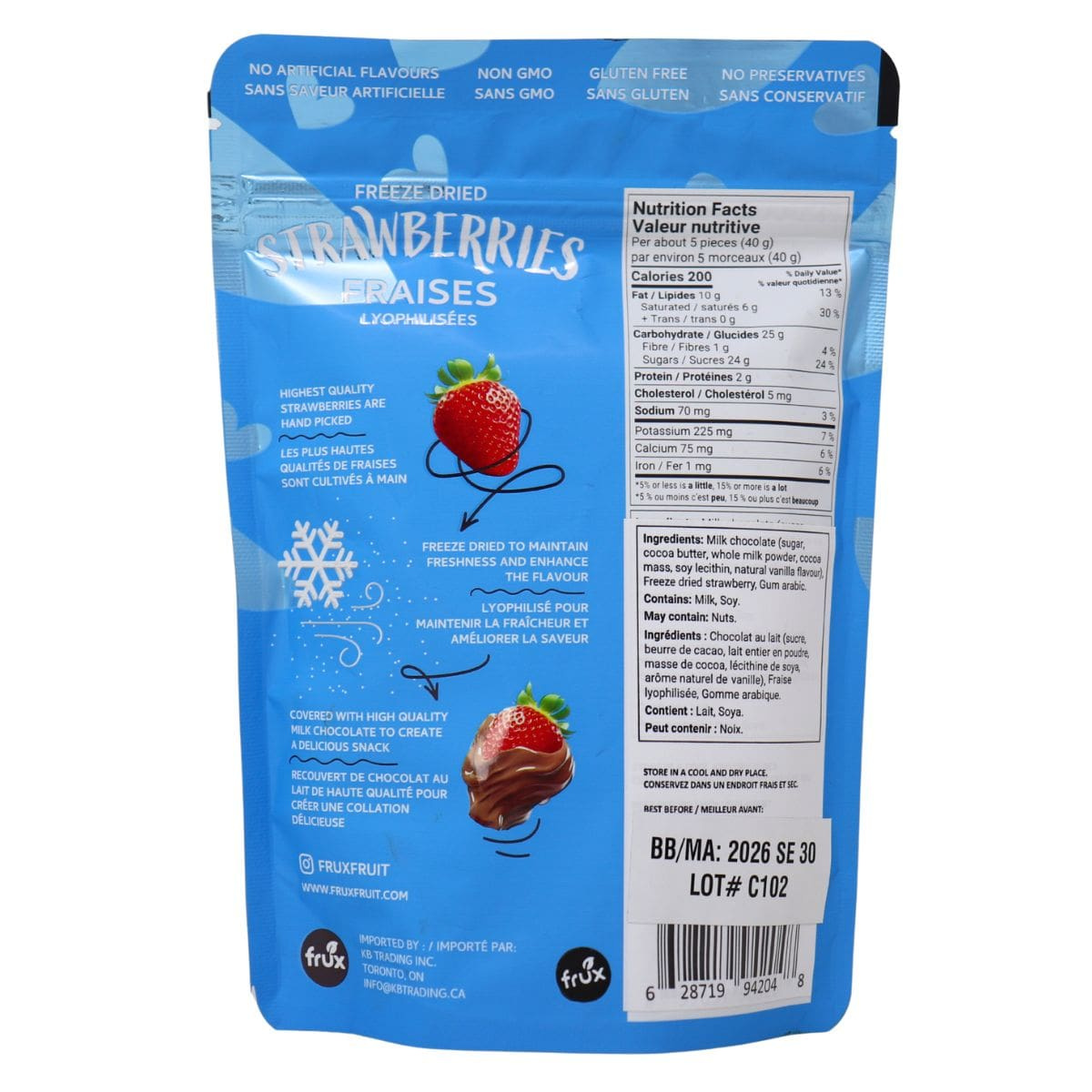 Whether savoured straight from the bag or passed around during cozy snack sessions, Frux Milk Chocolate Covered Strawberries bring a soft, dessert-inspired moment to everyday snacking with a playful touch of comfort.
