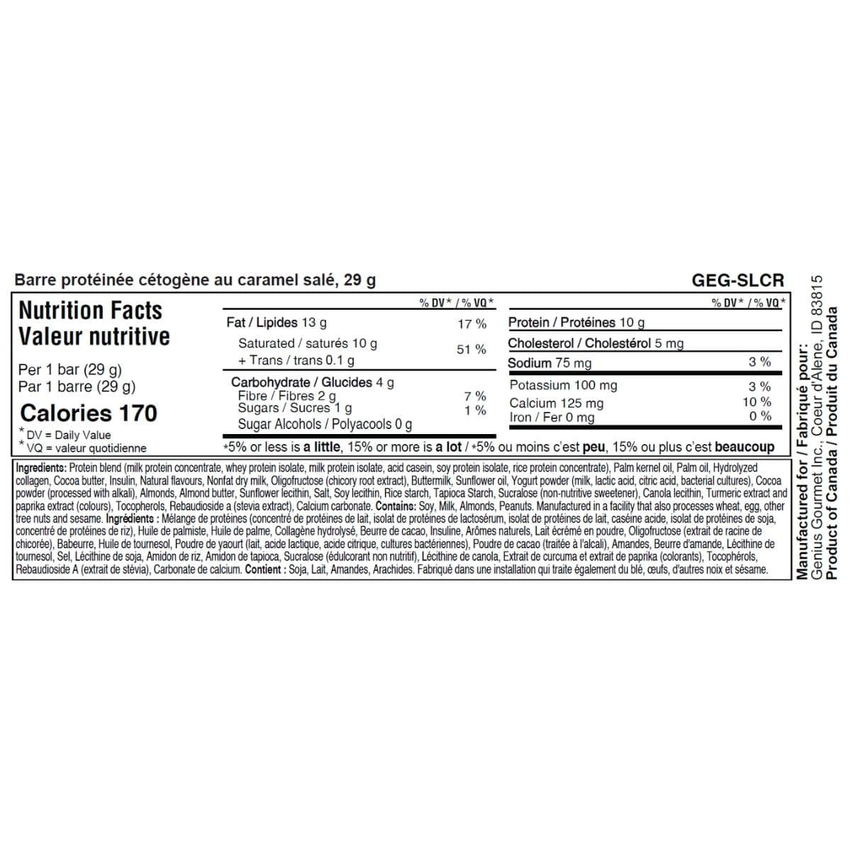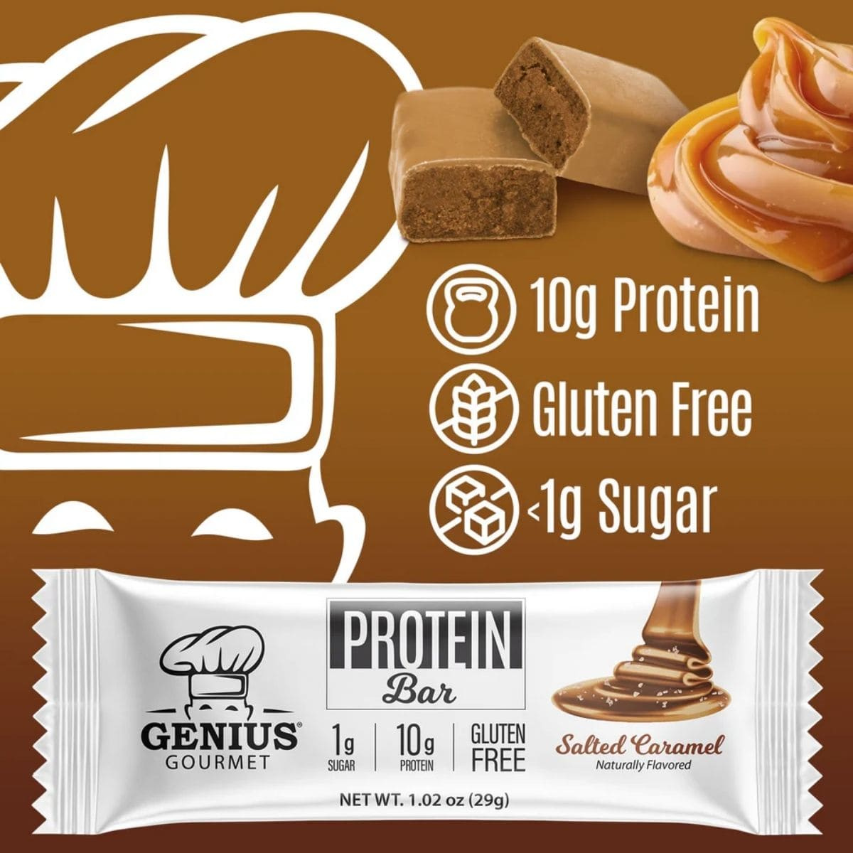 Dive into a world where innovation meets indulgence, where low-carb meets high-protein, and where sweet meets salty. With Genius Gourmet’s keto bar, you get premium MCTs and 10g of protein, with only 1g of sugar and 2 net carbs, all wrapped up in mouthwatering salted caramel! Now, that’s some pretty mind-boggling macros! It’s a low-carb, high-protein bar that's not just delicious; it's pure genius! Whether you're crunching numbers at the office, crushing it at the gym, or just craving a sweet and salty treat, Genius Gourmet's salted caramel keto protein bar is the answer to all of your problems!