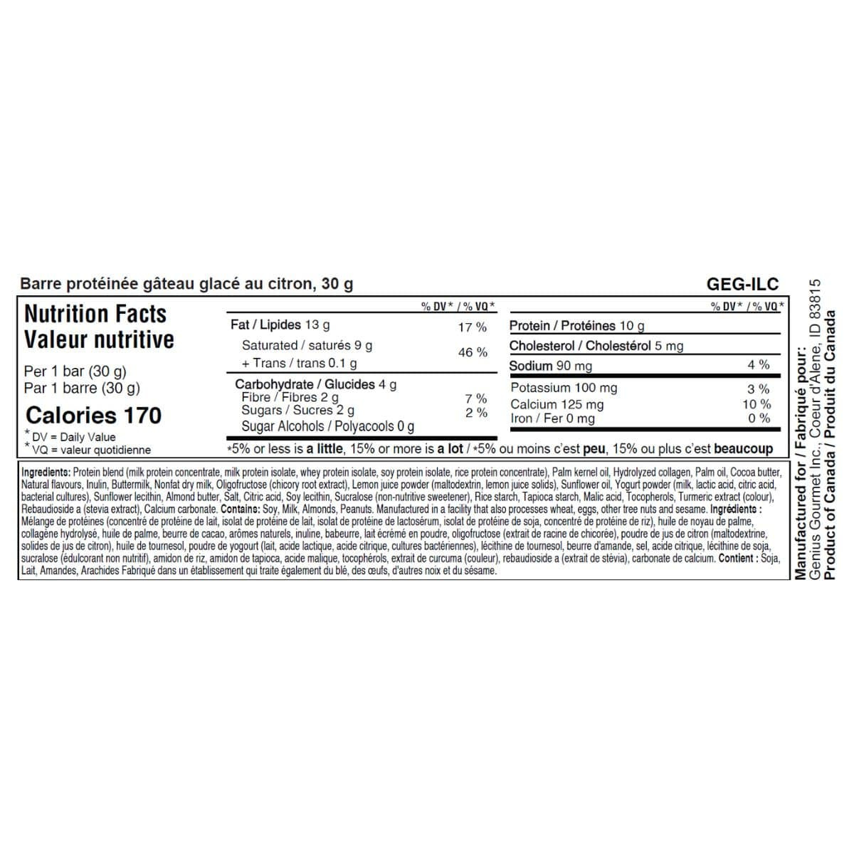 Pucker up for Genius Gourmet Iced Lemon Cake keto protein bar. The zesty treat that’ll make your taste buds sing! This isn’t just another protein bar. Packed with 10g protein and less than 2g sugar and 2 net carbs, it’s the perfect guilt-free indulgence. Time to knock the midday slump out of the park (and your life)!