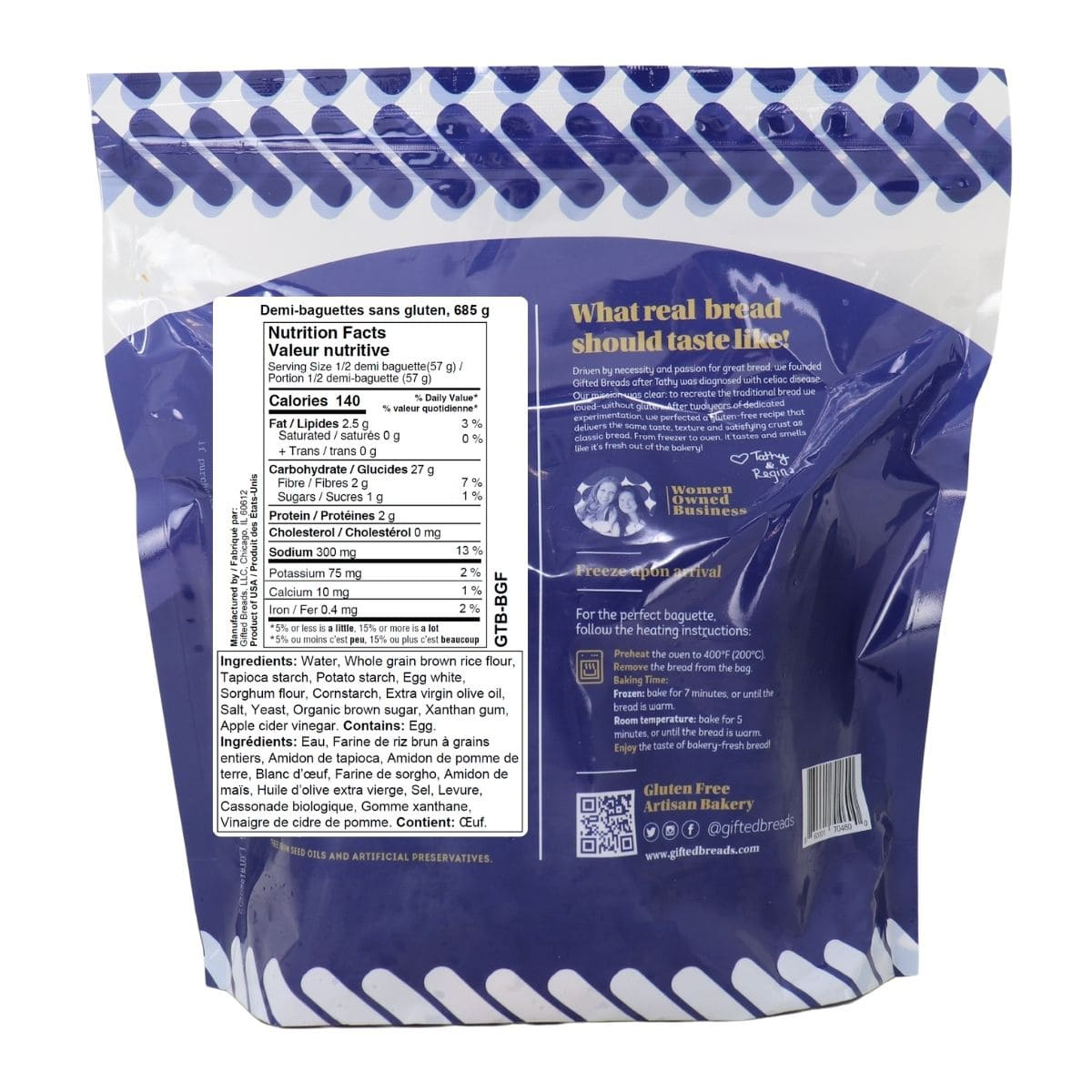 A classic baguette with a gluten-free twist. Gifted Breads Gluten-Free Baguette arrives parbaked and ready to crisp up in your oven, delivering the crunchy crust and soft interior that bread lovers miss most. Whether you slice it warm for dinner, layer it with cheese, or tear it fresh from the oven, it’s got the real French bread feel without the wheat.