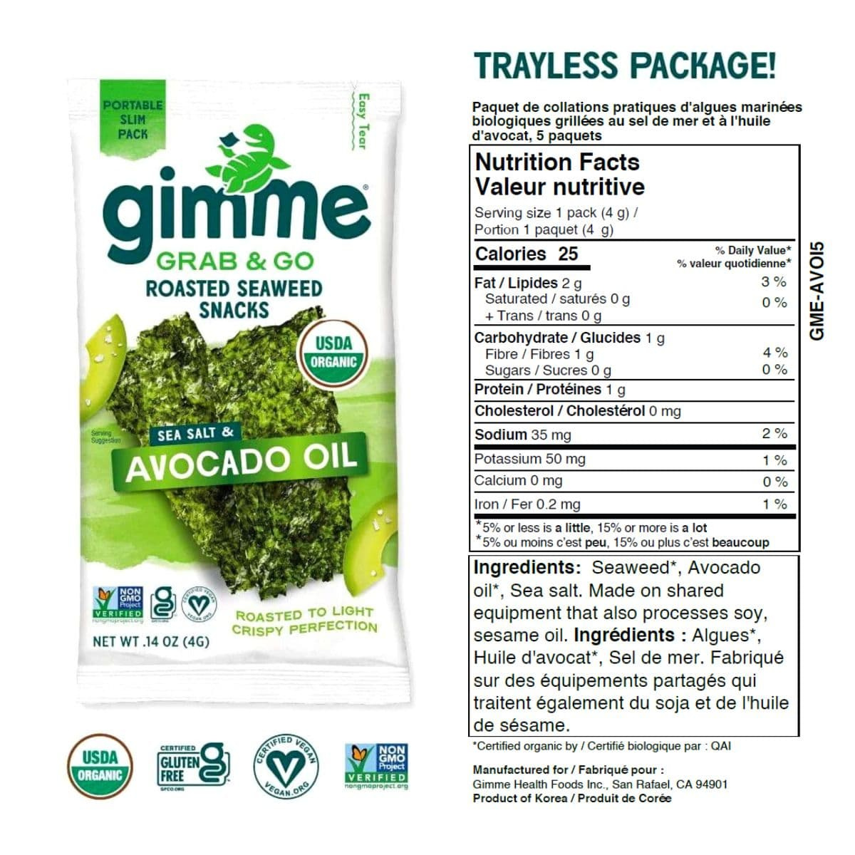 GimMe Organic Roasted Seaweed Grab & Go Snack Pack Sea Salt & Avocado Oil, 5 Packs