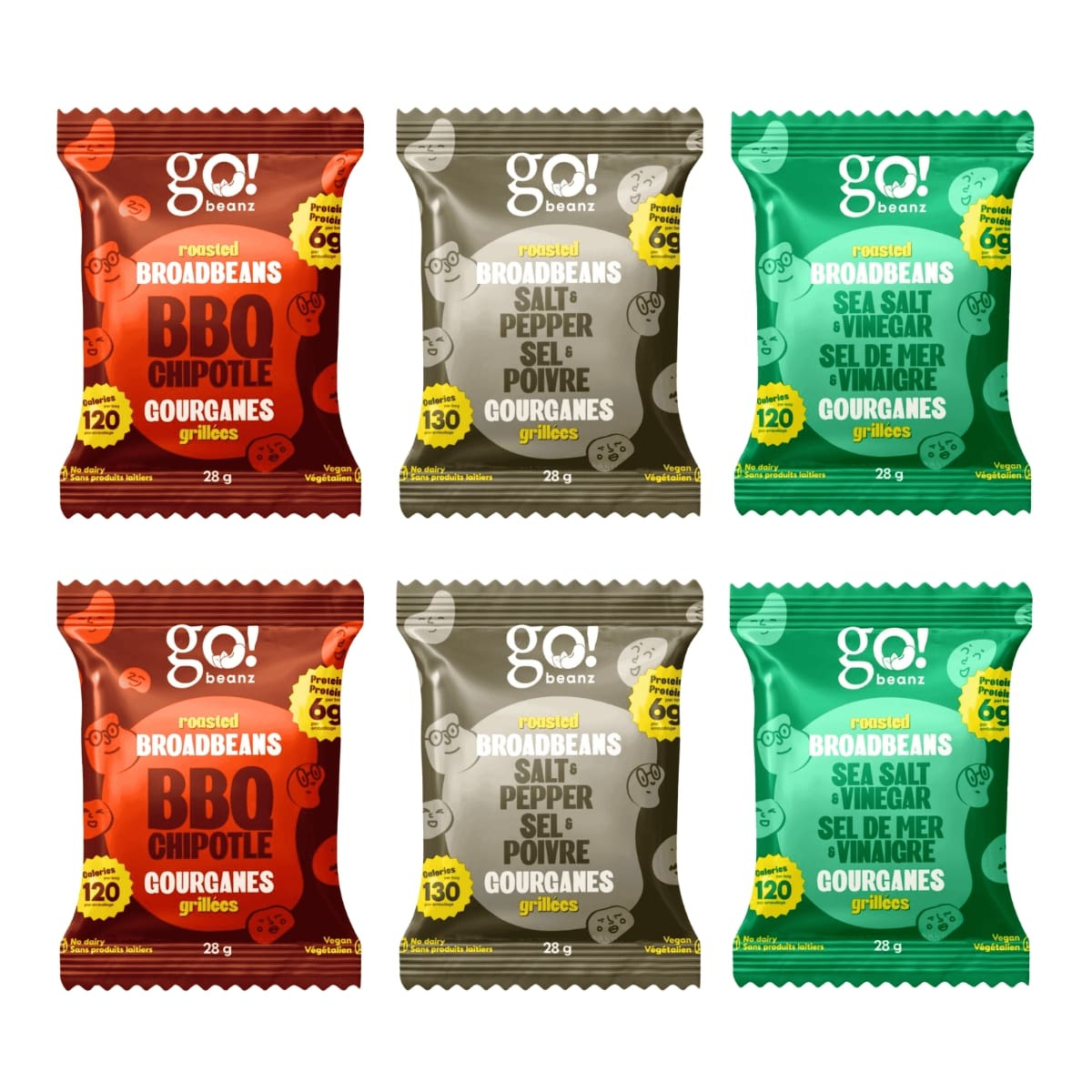 The Go! Beanz High Protein Roasted Broadbeans Snack Variety 6-Pack brings you a crunchy lineup of roasted broadbeans, each flavour crafted to give you maximum taste and plant-based fuel. Every 28 g pouch is packed with high-quality protein, fibre, and satisfying crunch, making it the perfect grab-and-go snack for busy days, active lifestyles, or anytime hunger strikes.