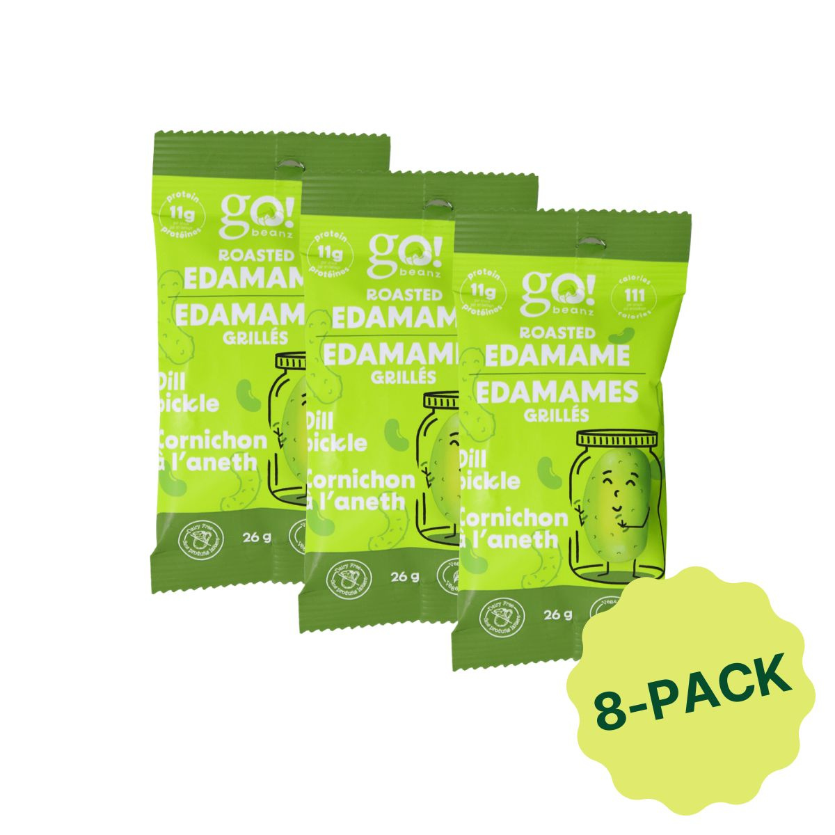 Go! Beanz High Protein Roasted Edamame Beans Snack Dill Pickle, 8 Pack, 26g each