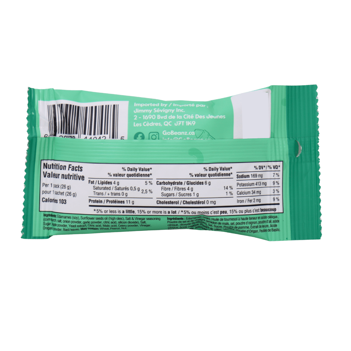 Looking for serious flavour and fuel? Go! Beanz Salt & Vinegar Roasted Edamame delivers the tangy crunch you crave with the plant-powered nutrition your body needs. Packed with protein, fibre, and all the goodness of edamame, this snack is made for easy on-the-go energy. Whether you're powering through your workday or need a crunchy post-gym snack, this 8-pack has you covered with bold taste and better-for-you ingredients.