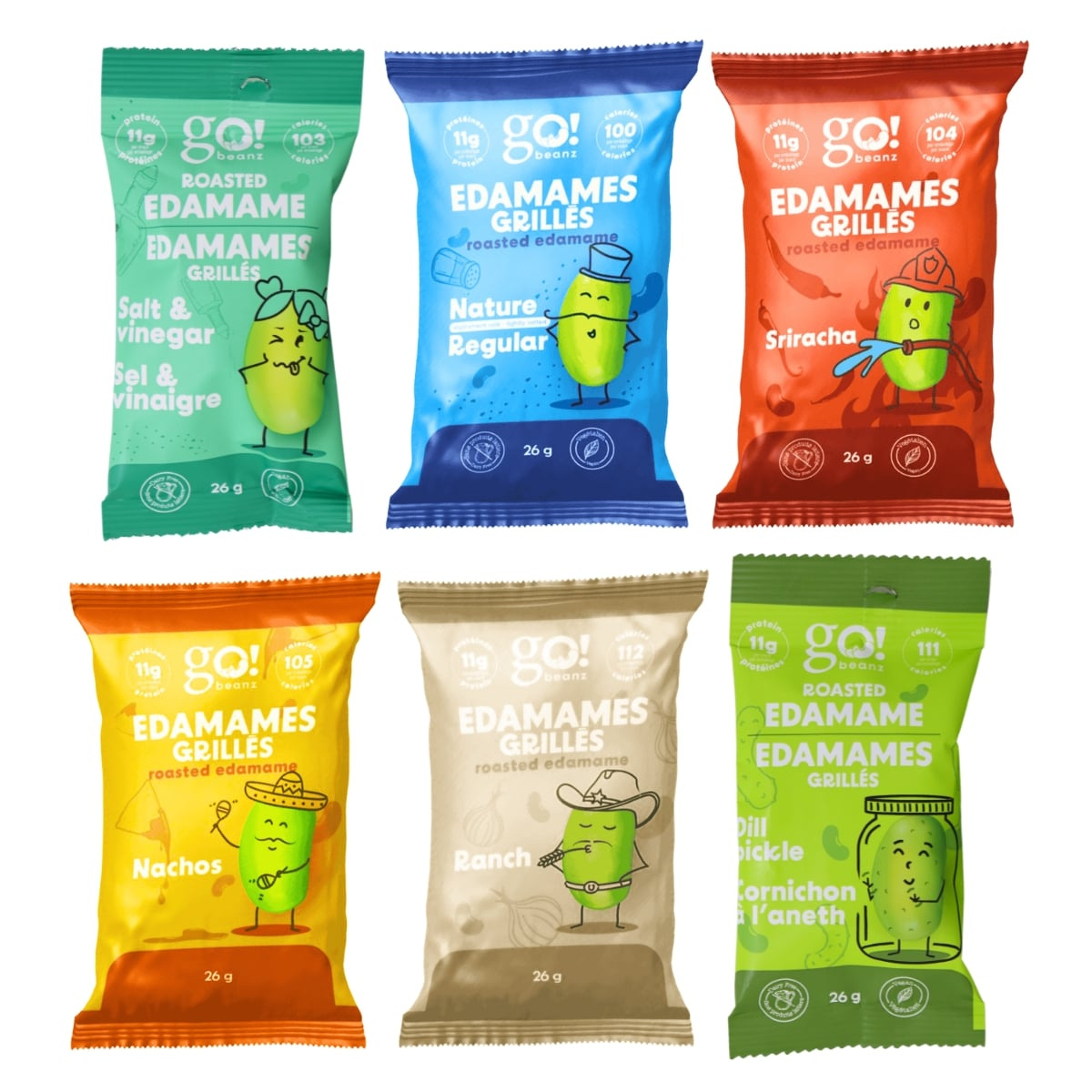 Snack smarter without giving up crunch. The Go! Beanz High Protein Roasted Edamame Beans Snack Variety 6-Pack brings you a lineup of bold, flavour-packed roasted edamame snacks that deliver a powerful punch of plant-based protein in every bag. Each 26 g pouch is perfectly portioned, roasted to a crisp, and seasoned for maximum flavour and satisfaction.