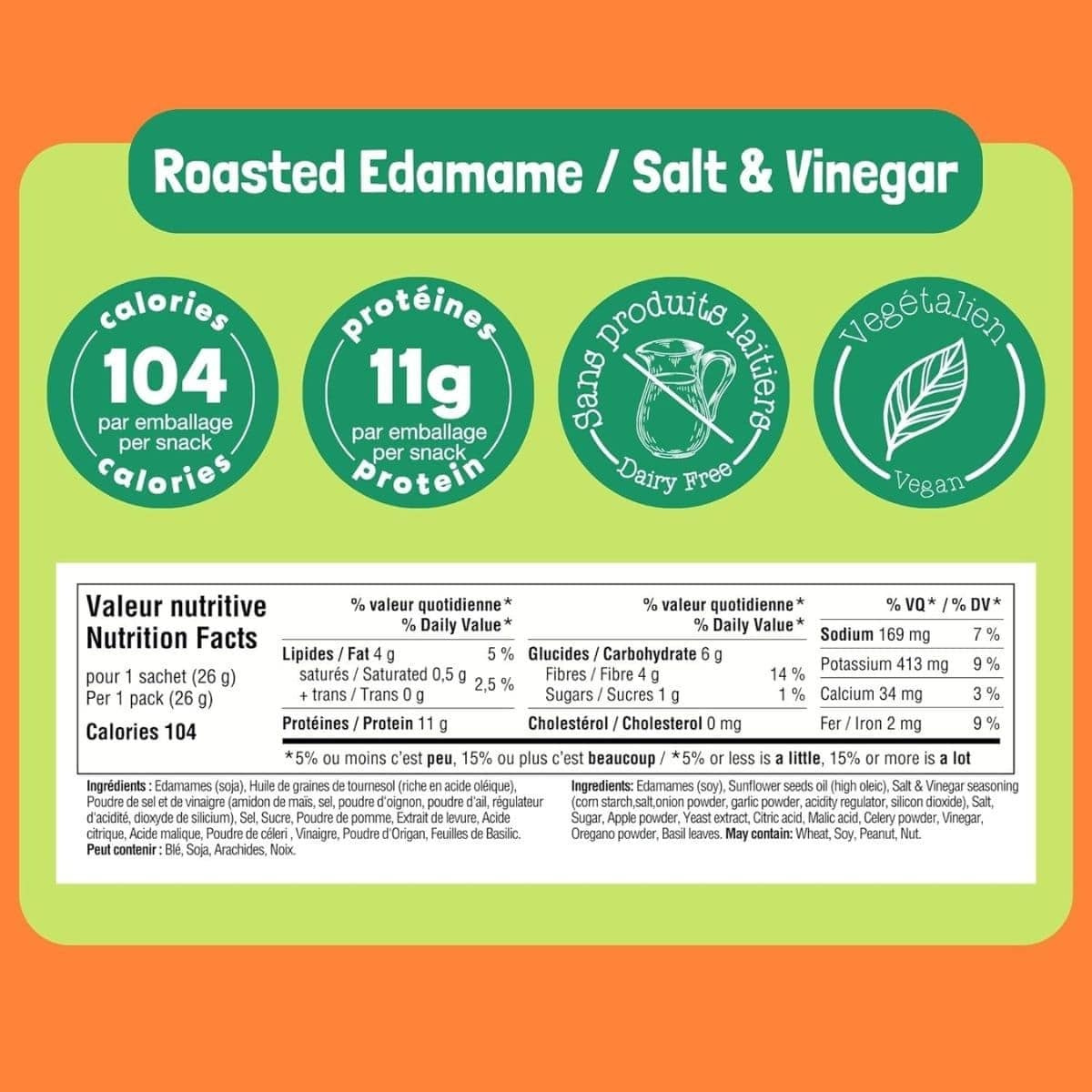 Go! Beanz High Protein Roasted Edamame Beans Snack Salt & Vinegar, 26 g- Edamames (Soy), Sunflower Seeds Oil (High Oleic), Salt And Vinegar Seasoning (Corn Starch,. Salt, Onion Powder, Garlic Powder, Acidity Regulator, Silicon Dioxide), Salt, Sugar, Apple Powder, Yeast Extract, Citric Acid, Malic Acid, Celery Powder, Vinegar, Oregano Powder, Basil Leaves May Contain: Wheat, Soy, Peanut, Nut