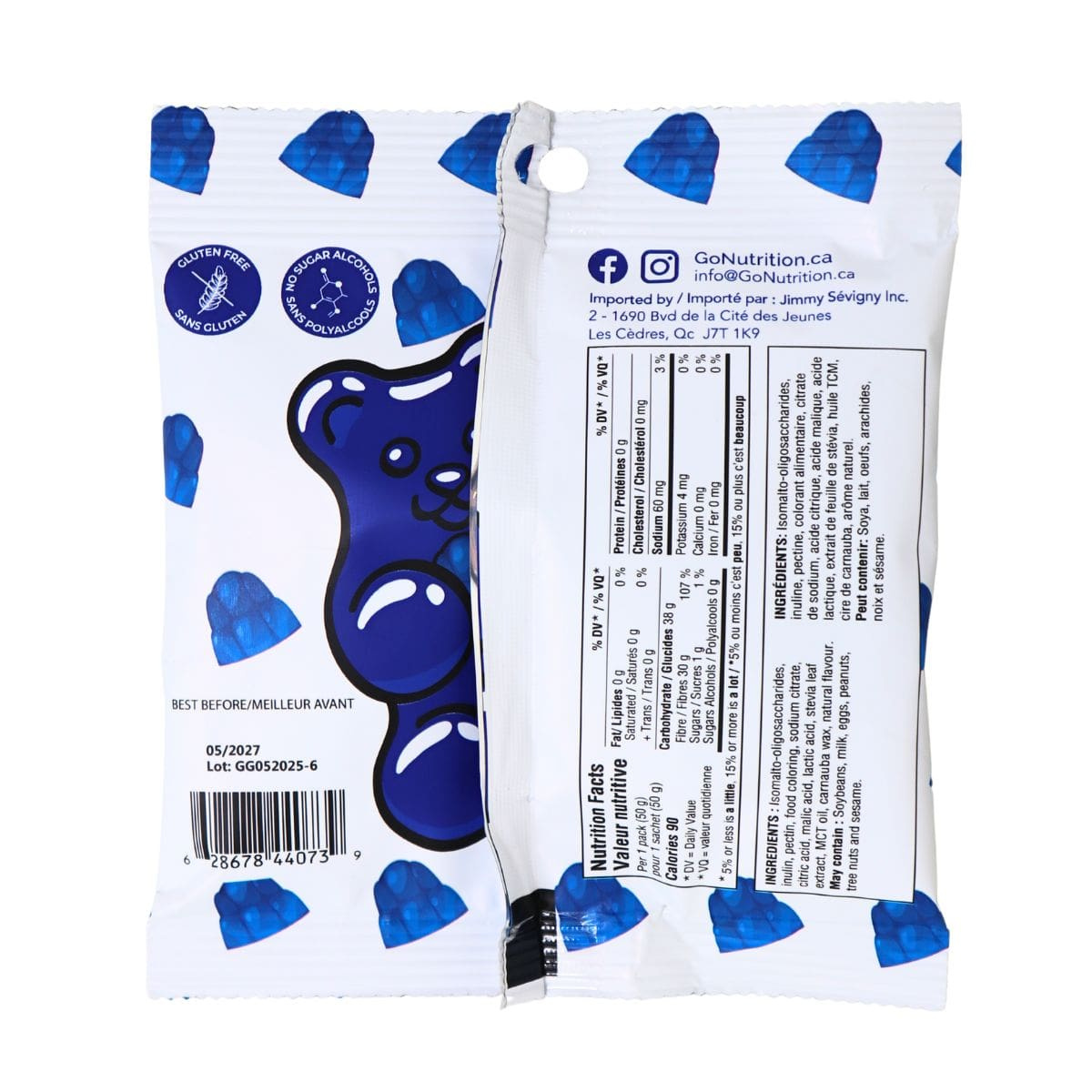 Say goodbye to sugar crashes and hello to sweet satisfaction! Go Gummy’s low-sugar gummies will be your new go-to healthy candy! From the initial burst of tangy delight to the lingering notes of sweet indulgence, each bite is like a juicy explosion of blue raspberry fruity bliss! Packed with 30g of gut-healthy fibre and only 1g of sugar, go on and treat yourself to Go Gummy!