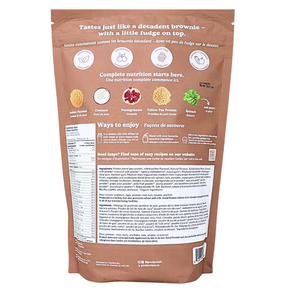 Do you love chocolate so much, that sometimes you wish you could drink it…chug it even? Us too. That’s why Good Protein created the ultimate chocolate experience—an all-in-one protein powder that tastes like a rich, fudgy brownie drizzled with gooey hot fudge. Yes, it’s as good as it sounds! Made with superfood ingredients like over 20 real fruits and veggies, and probiotics, Good Protein’s chocolate fudge protein powder really does it all. Packed with 21g of plant-based protein and 7g of gut-healthy fibre, every sip and shake is a chocolatey dream come true!