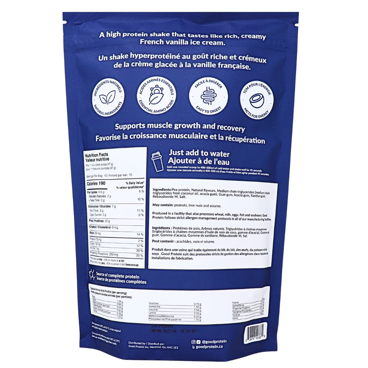 Fuel your day with Good Protein All-In-One Plant-Based Shake in French Vanilla. Packed with plant-based protein, superfoods, and essential nutrients, this creamy, delicious shake delivers everything you need in one convenient blend. Perfect for a quick breakfast, post-workout recovery, or an on-the-go snack, it’s vegan-friendly, naturally flavored, and easy to mix for a smooth, satisfying drink that keeps you energized and nourished.