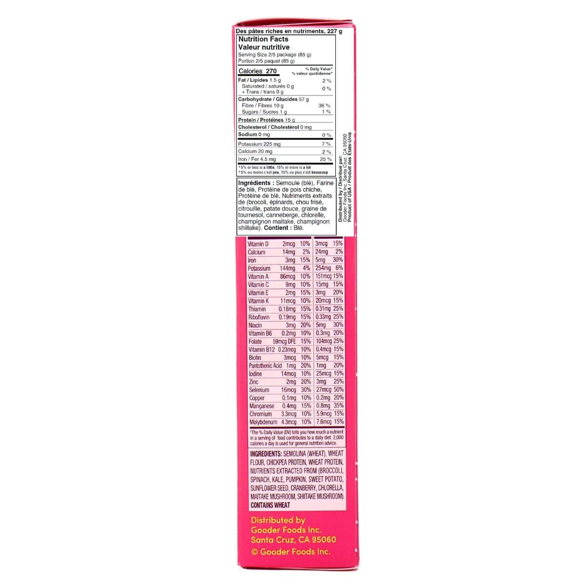 Curvy, twisty, and full of personality, Goodles curveball pasta is here to add a twist to your pasta game. These nutrient-packed pipette noodles are tiny pockets of pure noodle love, ready to catapult your pasta game to new heights. With 10g of plant-based protein, 7g of fibre, and packed with 21 nutrients from real fruits and veggies, this is pasta like you've never imagined before–it's Goodles! With superfoods like kale, spinach, pumpkin, and sweet potato cleverly hidden in every delicious bite, it's like a nutritional powerhouse disguised as your favourite comfort food. It’s got the same taste and texture as traditional pasta–this is one curveball you don’t want to miss!