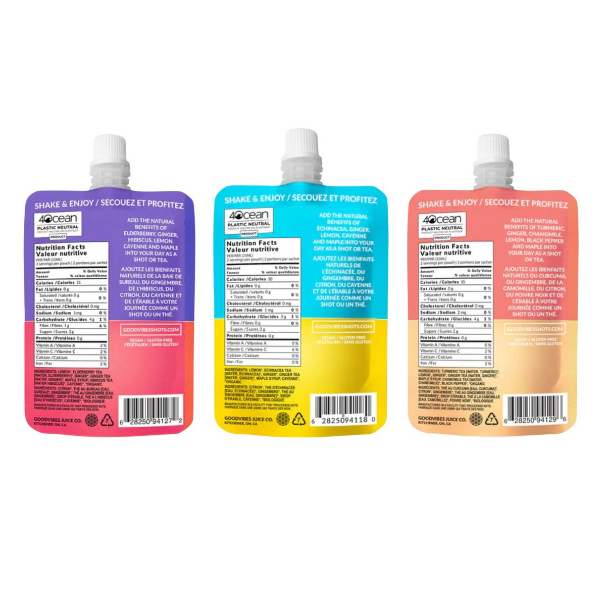 This pack offers a wide array of holistic ingredients and benefits, so you can choose the perfect juice shot for whatever you're feeling. Whether you need to ward off a cold, boost your immunity, or simply give your body a little extra love, Goodvibes has a natural wellness juice shot for that!Â