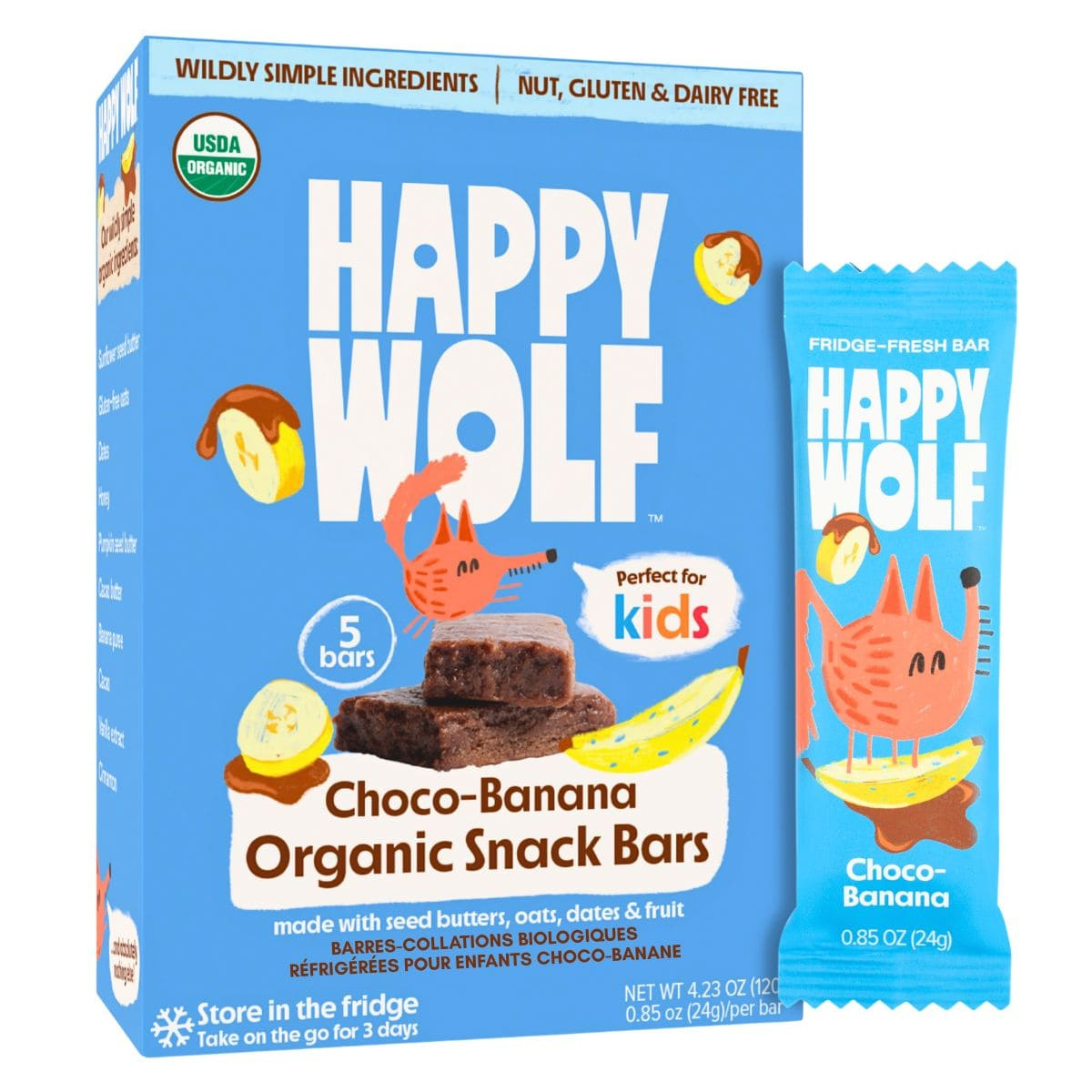 Happy Wolf Organic Kids Refrigerated SnackBars Choco-Banana, 5 Bars