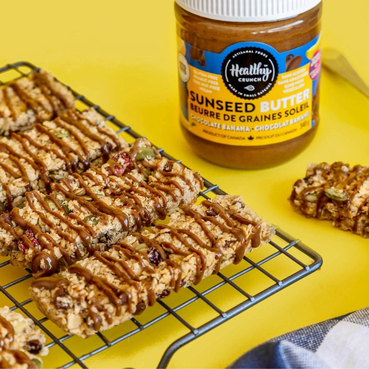 This spread is bananas, B-A-N-A-N-A-S! Healthy Crunch Chocolate Banana Seed butter is what you’ve been missing from your life! Made with sunflower seeds, not tree nuts or peanuts, this school-safe spread is thick, velvety and chocolatey. With the extra added goodness of bananas, this vegan spread is like a banana split in a jar. And with only 3g of net carbs per serving and no gluten, feel free to use it liberally!