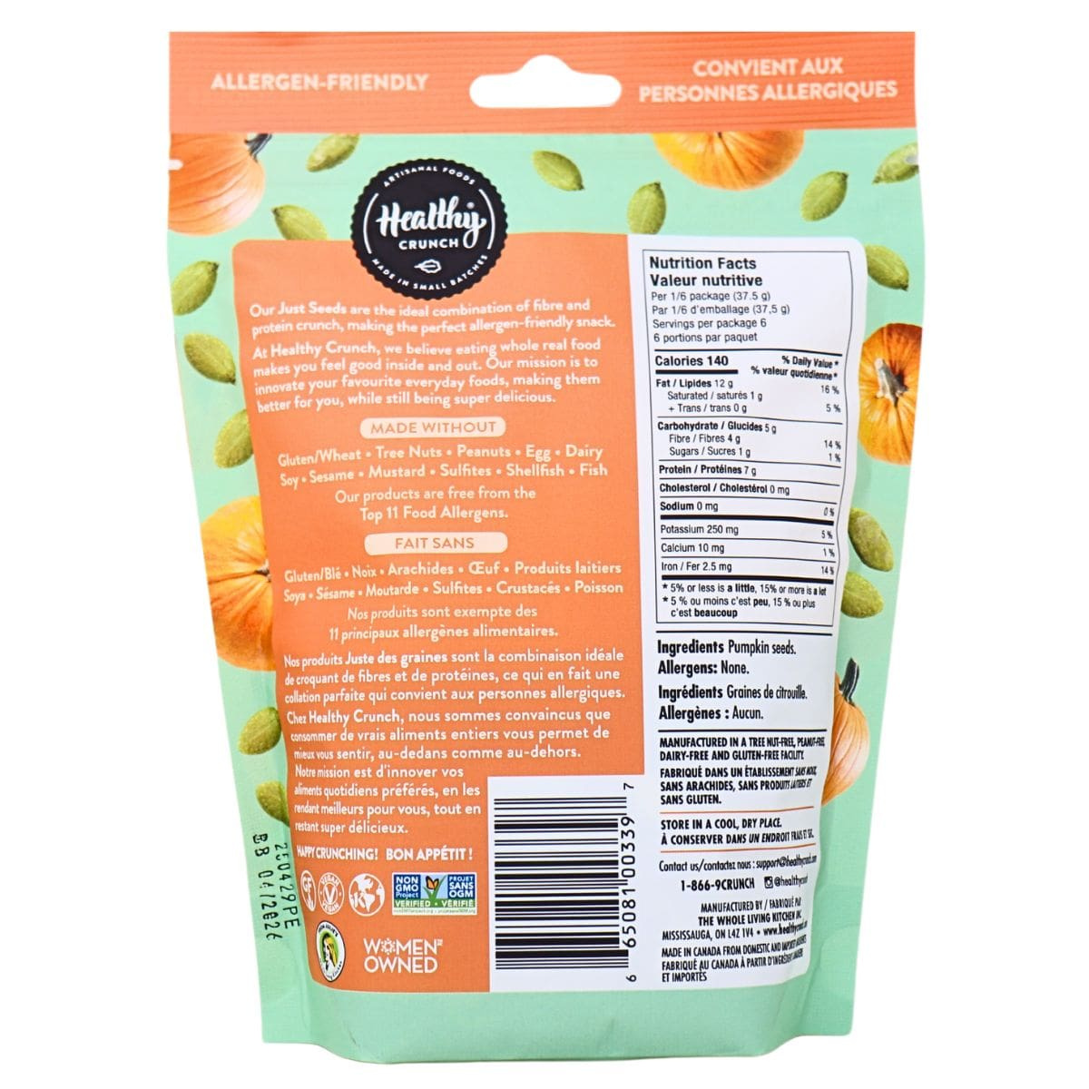 Get ready to crunch, munch, and pumpkin punch your way through snack time with Healthy Crunch! These raw pumpkin seeds, also known as pepitas, are unsalted and unsweetened–just shelled pumpkin seeds ready to be eaten! Sprinkle 'em on your morning yogurt to add a crispy kick, toss 'em into your salad for that extra oomph, or simply pop 'em by the handful whenever the snack attack strikes. A natural source of protein, fibre, and healthy fats, these pumpkin seeds brings the ‘gourd’ vibes to snack time!