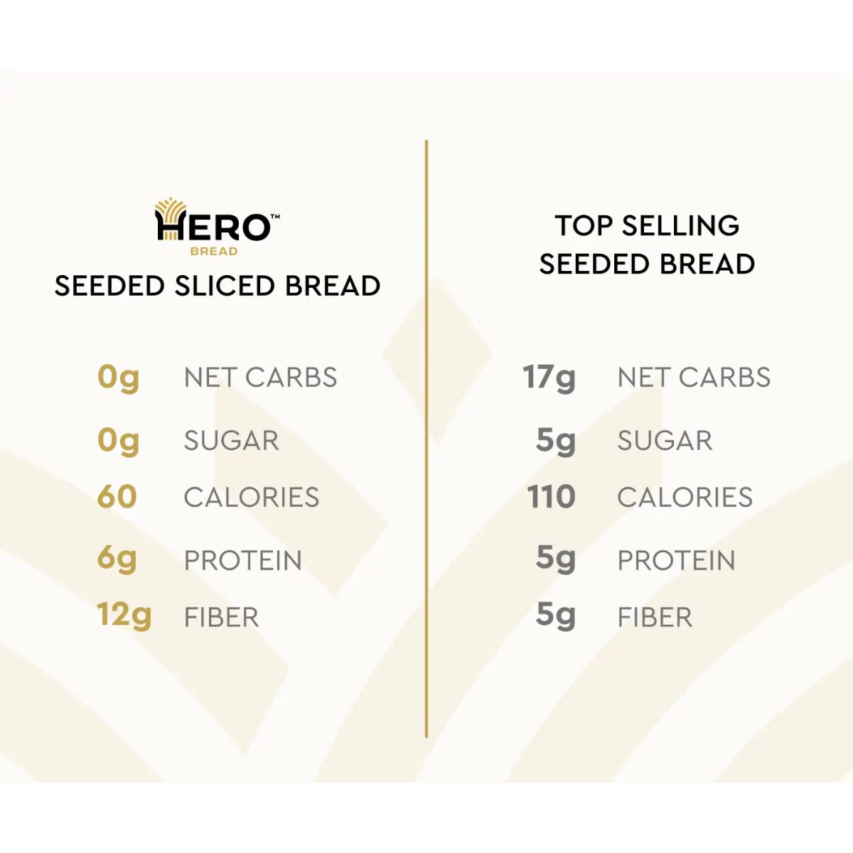 Crafted from natural ingredients with no artificial preservatives, this seeded bread offers the perfect blend of flavour, texture, and nutrition for anyone who refuses to compromise on their bread cravings. Hero Seeded Bread is the everyday loaf that makes low carb living easy, delicious, and something you can look forward to with every meal.