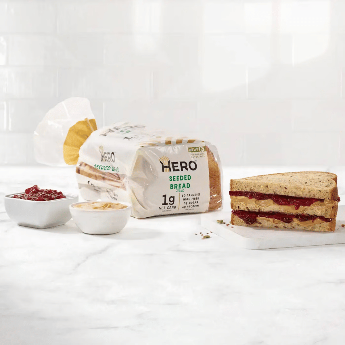Made with heart-healthy olive oil, Hero Seeded Bread contains just 1 gram of net carbs and zero sugar, while delivering 12 grams of fiber and 6 grams of plant-based protein to keep you full throughout the day. Whether you’re making a loaded sandwich, topping toast with almond butter and jelly, or enjoying it straight from the bag by the slice, this low-carb bread stands up to your favourite fillings without falling apart.