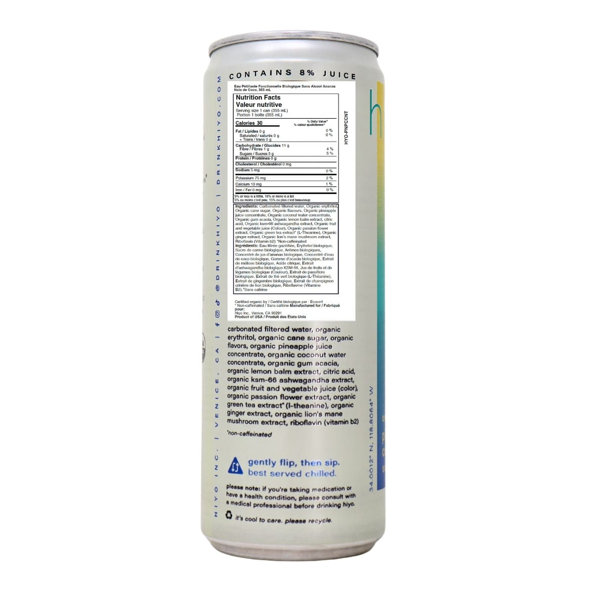 Escape to tropical bliss, no passport or cocktail required. Hiyo Organic Non-Alcoholic Functional Seltzer in Pineapple Coconut blends juicy pineapple, creamy coconut, and crisp bubbles for a refreshingly sunny sip that feels like lounging beachside.