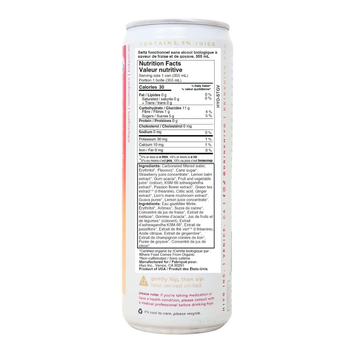 Kick back, unwind, and let your taste buds drift away with Hiyo. One sip of this non-alcoholic setlzer and you’ll feel like you're gliding into a sunset on the sea. With the juicy strawberries bringing a bold sweetness, and tropical guava for a floral finish, Hiyo is infused with organic adaptogens, natural nootropics, and functional botanicals to help you relax, refresh, and reset. With all-natural ingredients like ashwagandha, L-theanine, lion's mane, and lemon balm, to give you a light euphoric lift, this adaptogen drink is the perfect way to take the edge off, without any booze and only 30 calories! Perfect for a midday refresh, social gatherings, or anytime you need a little mood boost. And trust us, it’s berrylicious!