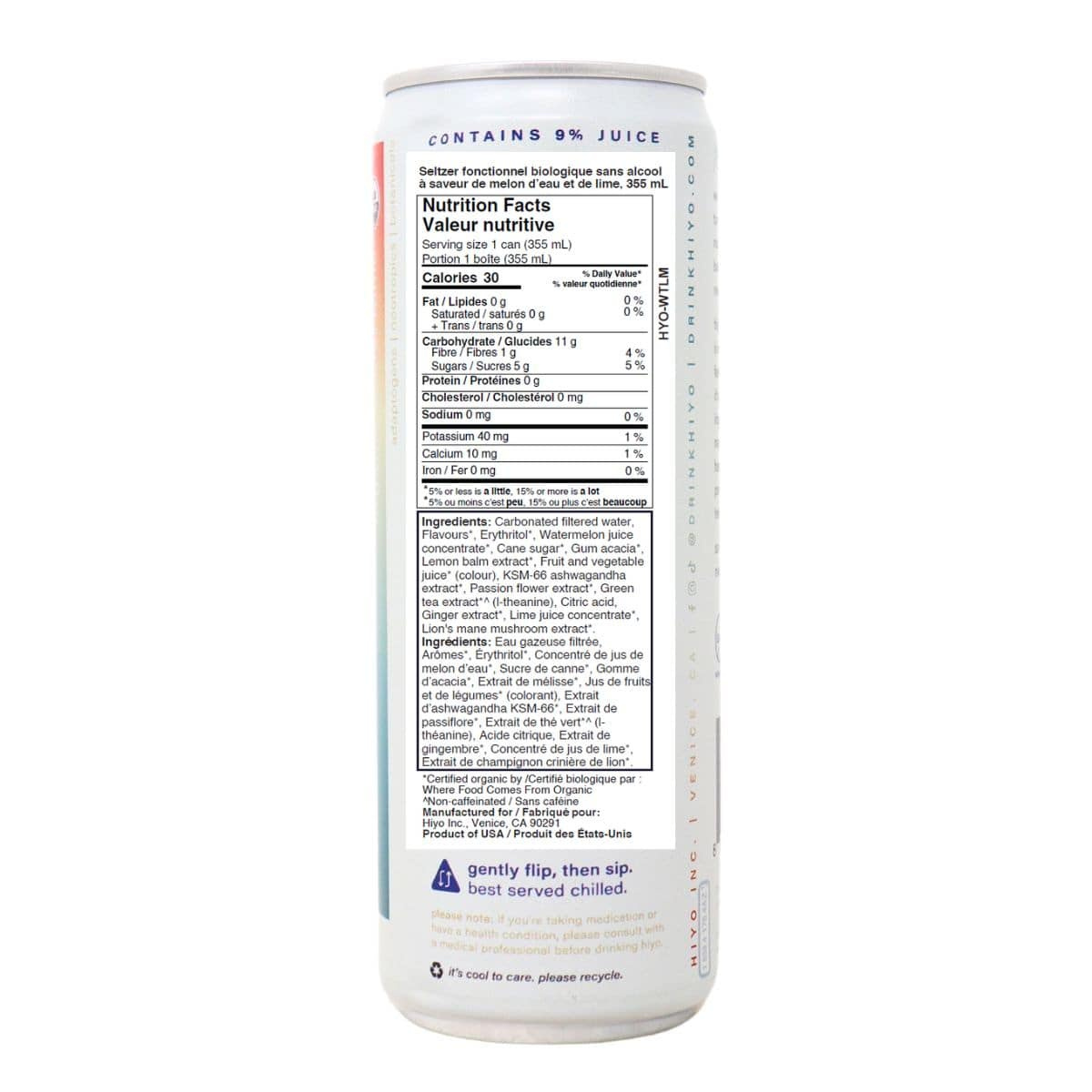 Hiyo Organic Functional Non-Alcoholic Seltzer Watermelon Lime, 355ml