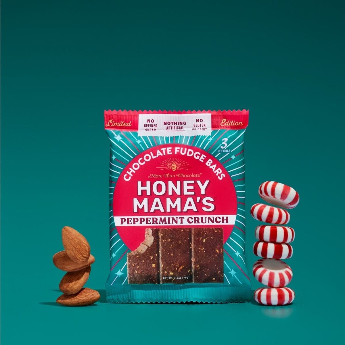 Honey Mama’s Peppermint Crunch Cocoa Truffle Bar is proof that sweetness can be simple; pure ingredients, real flavour, and all the peppermint almond crunch chocolate bar goodness you deserve.