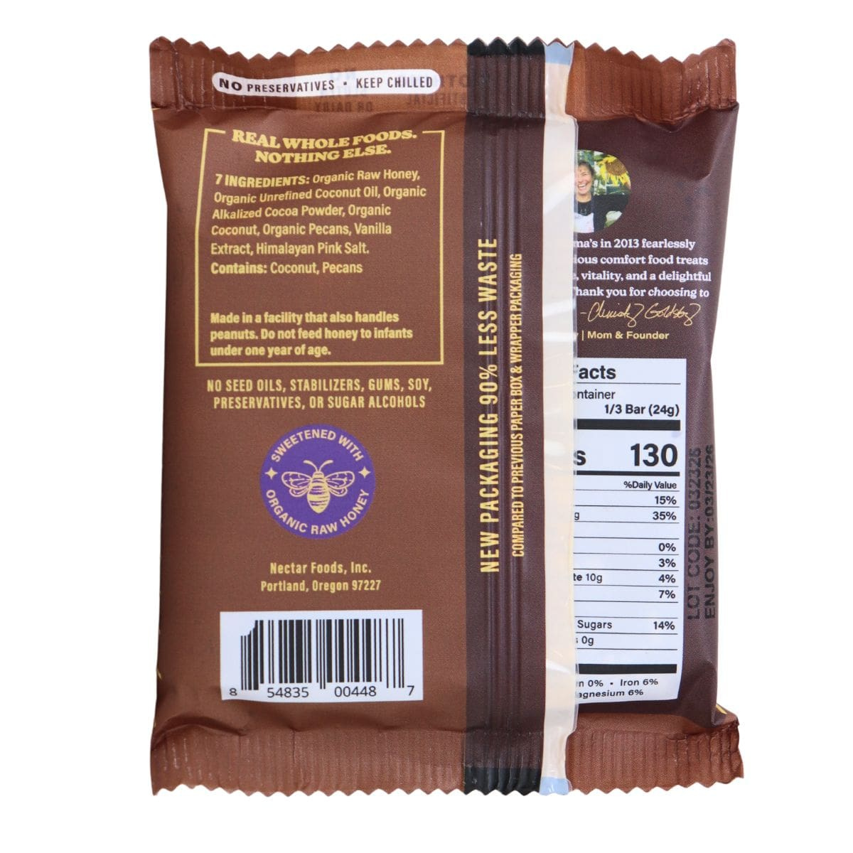 Organic raw honey, Organic unrefined coconut oil, Organic alkalized cocoa powder, Organic coconut, Organic pecans, Vanilla extract, Himalayan pink salt