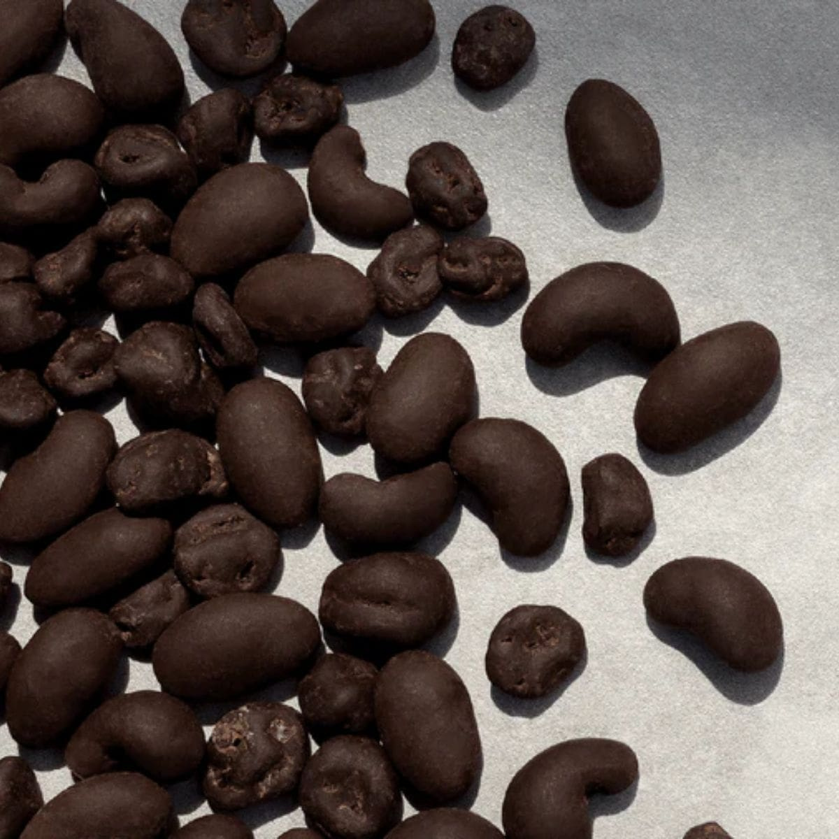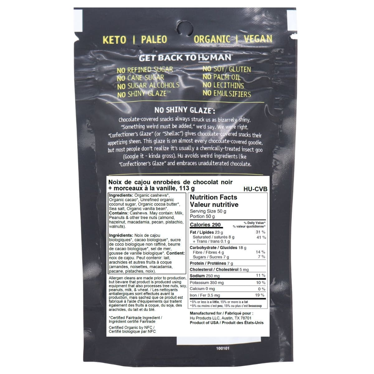 Chocolate covered snacks (cashews) always struck us as bizarrely shiny. "Something weird must be added," we'd say. We were right. "Confectioner's Glaze" (or"Shellac") gives chocolate-covered snacks their appetizing sheen. Not with us! Hu avoids weird ingredients and embraces unadulterated chocolate.
