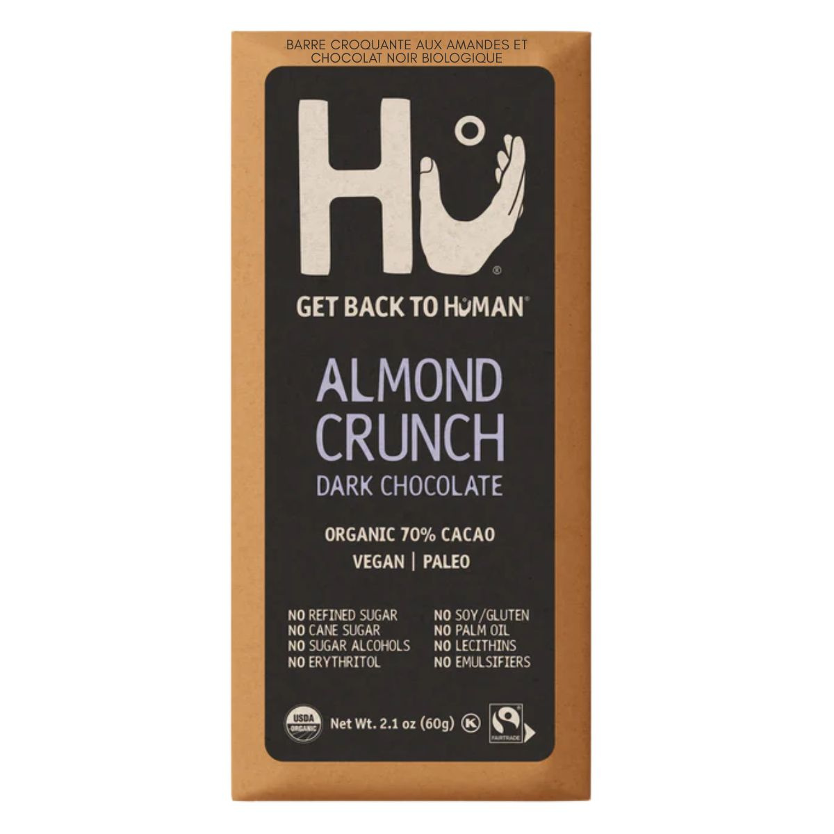 Get ready for a new dark chocolate bar in the Hu Kitchen lineup! Introducing the Hu Kitchen Organic 70% Dark Chocolate Almond Crunch Bar. Vegan and Fairtrade, this bar is all you’ll ever need and more. This gluten-free bar is simply made with dark chocolate and almonds. That’s it.