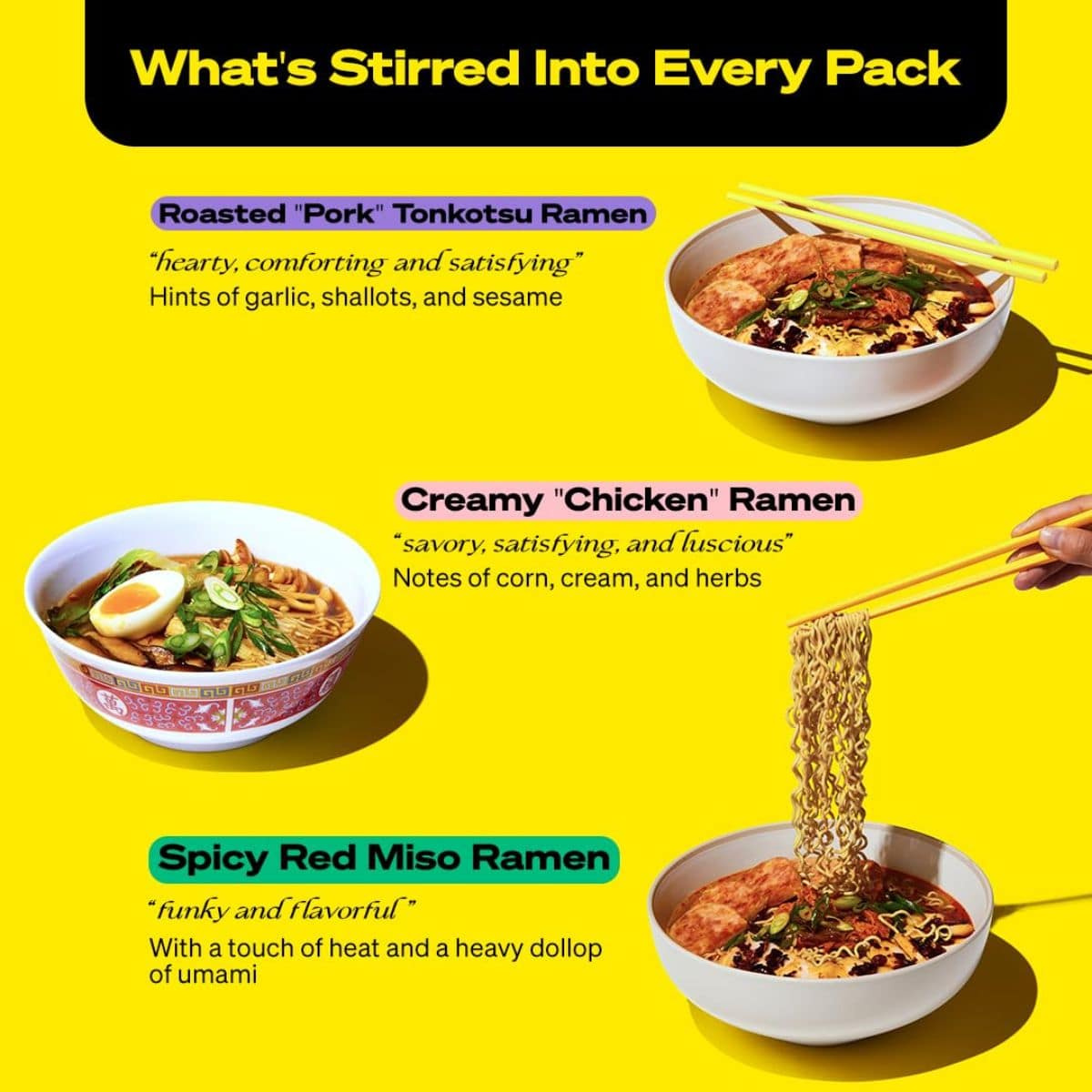 Each serving has 21 g of plant-based protein, keeping you full and fuelled while still keto-friendly and low carb. Spicy Red Miso is savoury with a chili kick, Creamy Chicken is smooth and comforting, and Roasted Pork Tonkotsu is hearty and rich. Just add hot water and enjoy a satisfying meal in minutes.