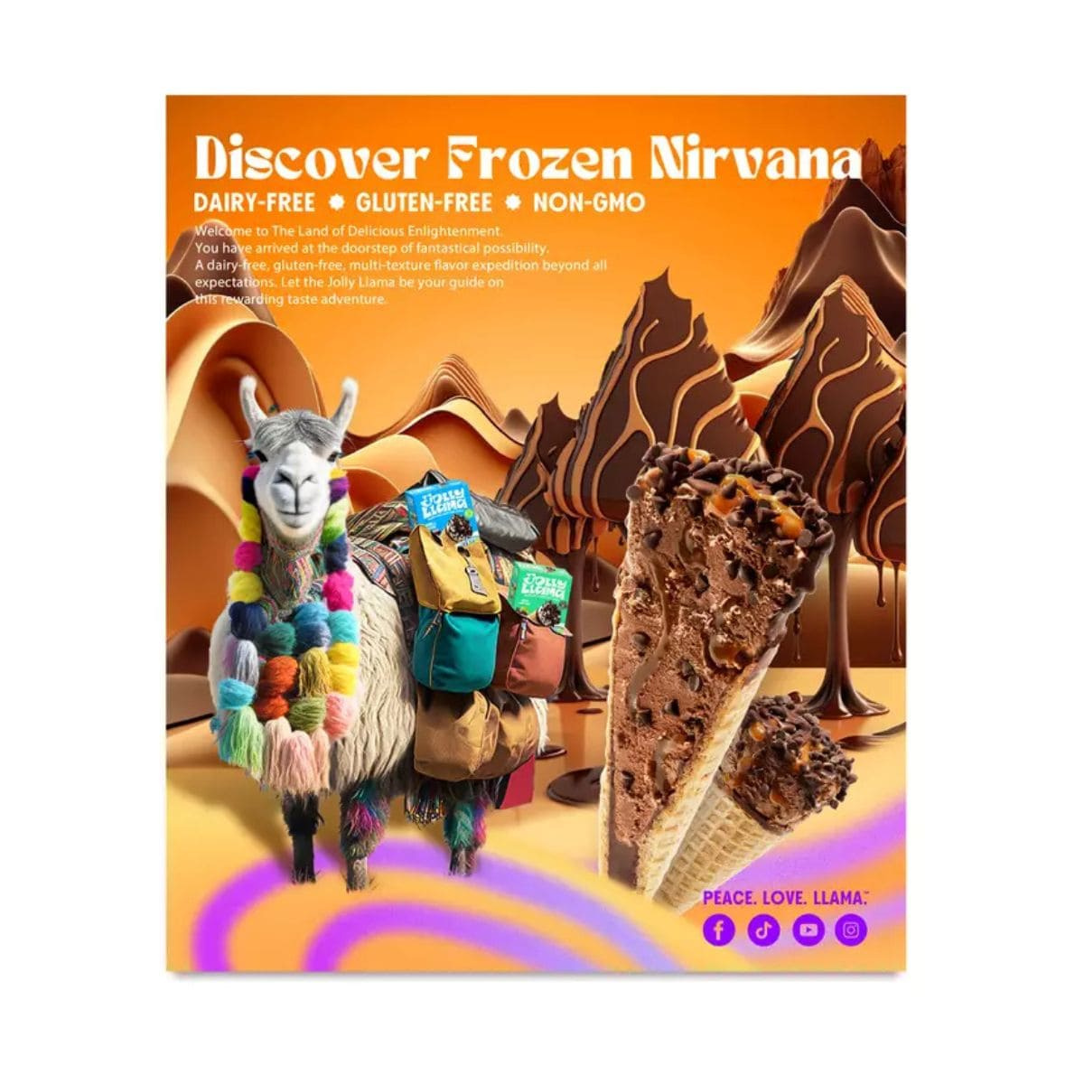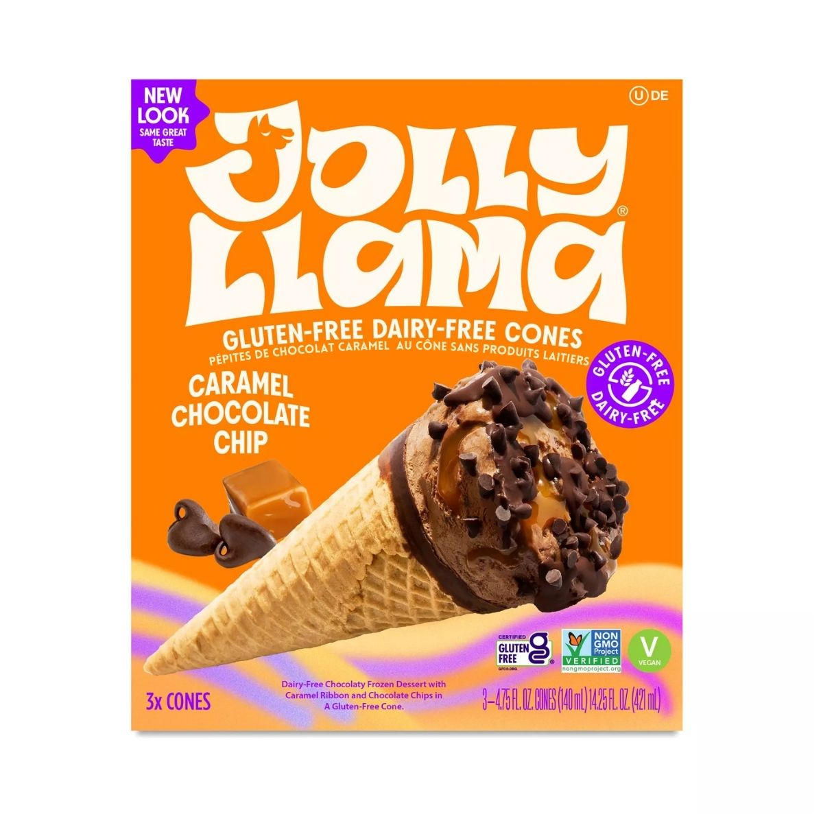 Get ready to cone-quer your dessert cravings with Jolly Llama! This delicious frozen treat starts with a crisp, gluten-free waffle cone that’s filled with velvety, dairy-free chocolate ice cream, topped with rich chocolate chips and a drizzle of buttery golden caramel. Gluten-free, vegan, plant-based and dairy-free, Jolly Llama’s caramel chocolate chip ice cream skips the compromise, and serves up tasty happiness. Cone-gratulations, you just found your new favourite ice cream!