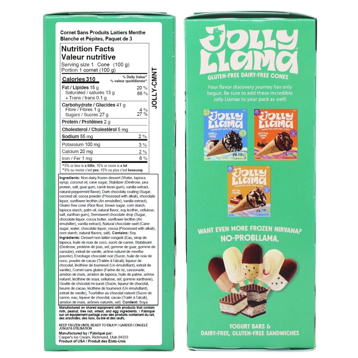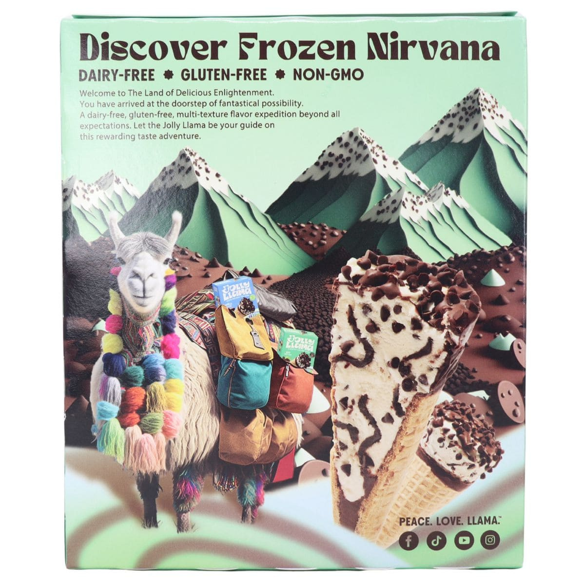 Bright mint, chocolate chips, and that iconic cone crunch come together in a frozen dessert that feels refreshing from the very first taste. Jolly Llama White Mint Chip Cones swirl cool mint frozen dessert with plenty of chocolatey pieces, all tucked inside a crisp gluten-free cone that delivers classic ice-cream-shop satisfaction.