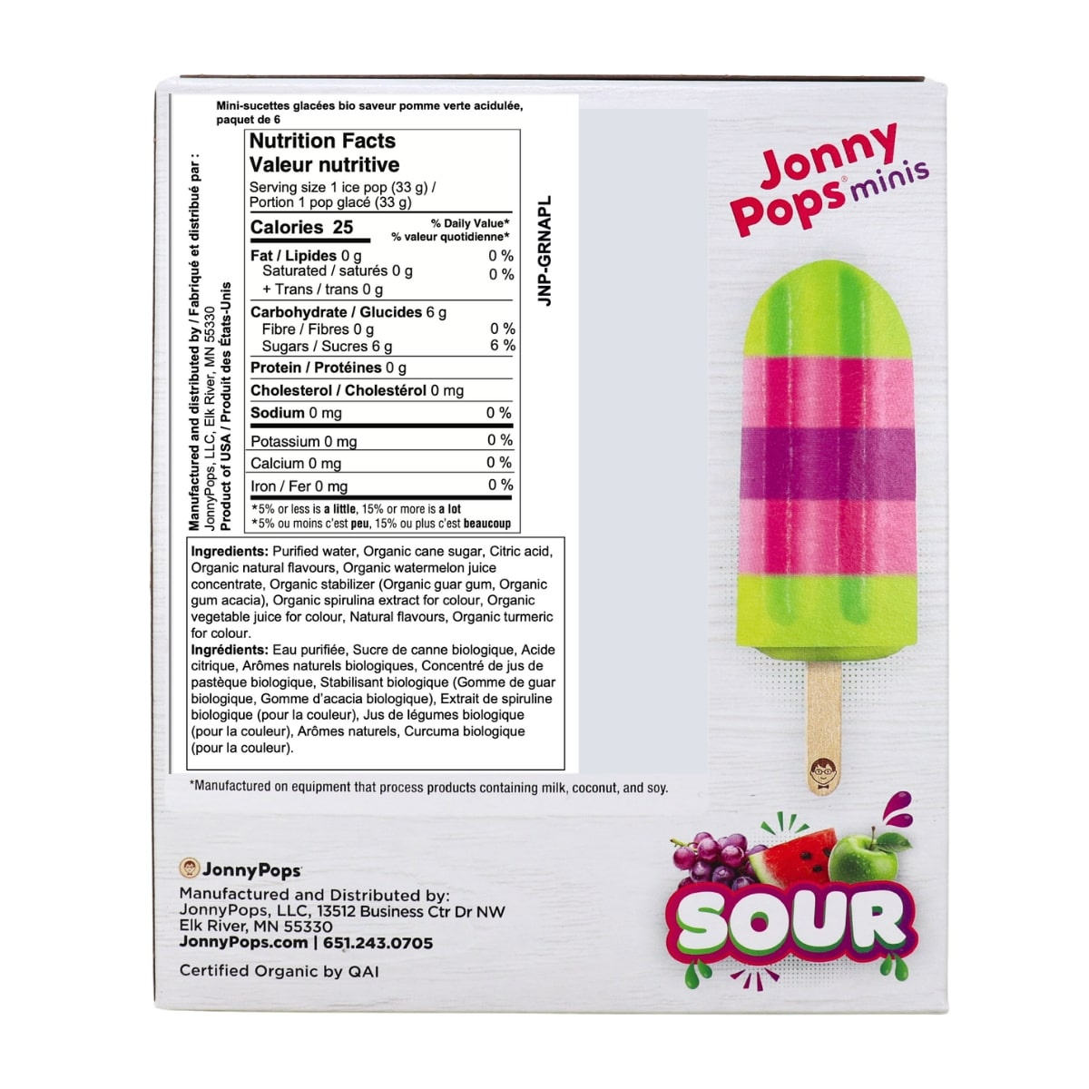 JonnyPops Organic Mini Popsicles Sour Green Apple Punch bring a burst of juicy, mouth-watering flavour in every little pop. These kid and adult-approved minis blend tangy green apple with fruity punch for the perfect balance of sweet and sour. They’re bright, refreshing, and super fun to snack on, especially straight from the freezer.