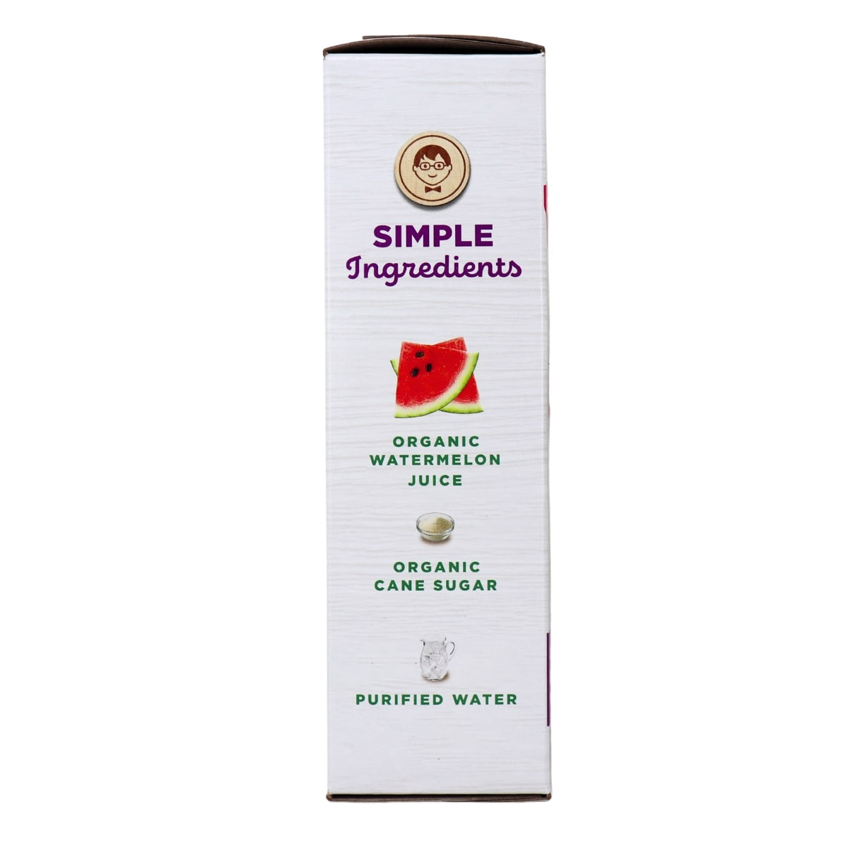 Purified water, Organic cane sugar, Citric acid, Organic natural flavours, Organic watermelon juice concentrate, Organic stabilizer (Organic guar gum, Organic gum acacia), Organic spirulina extract for colour, Organic vegetable juice for colour, Natural flavours, Organic turmeric for colour.