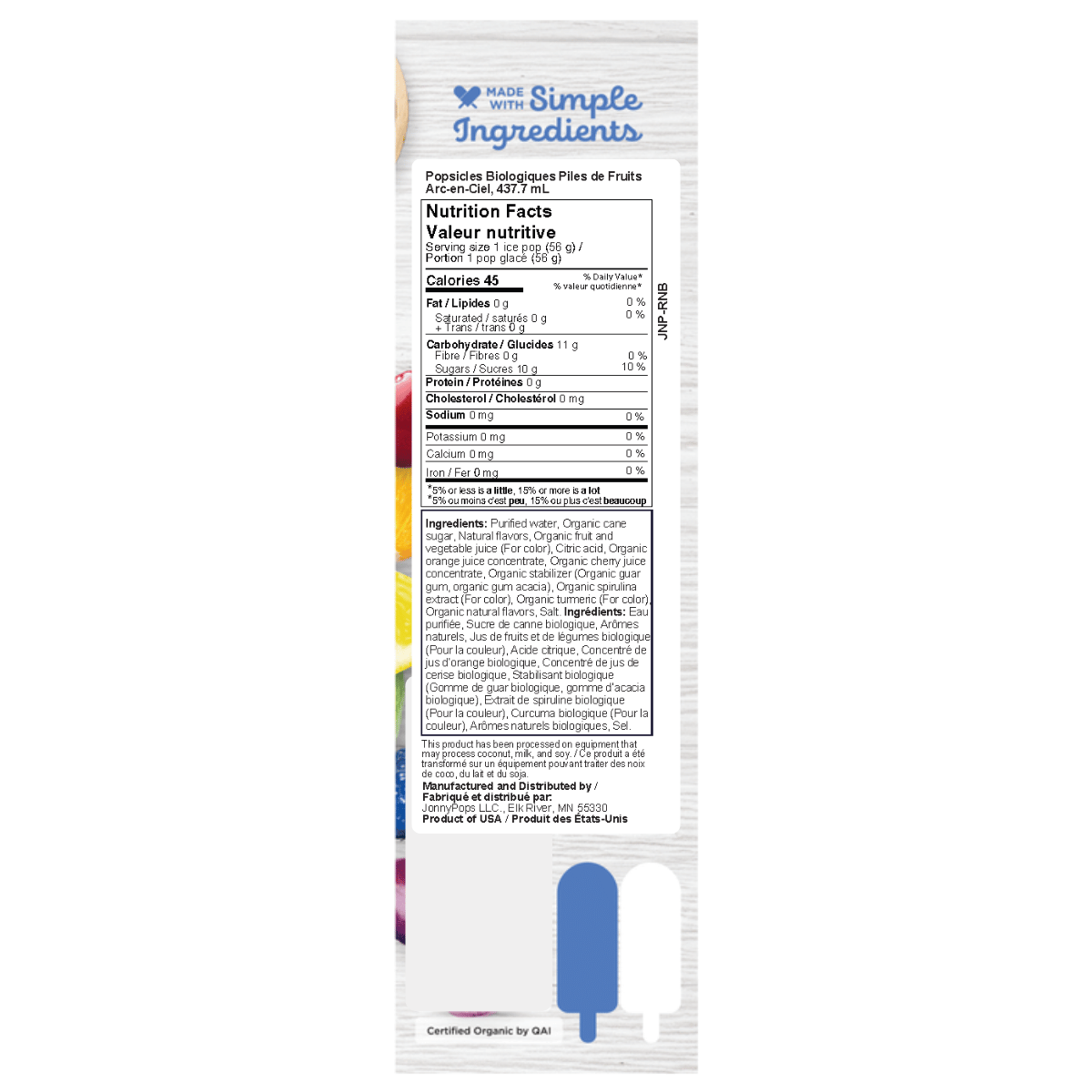 Sometimes simple really is best. JonnyPops Rainbow Fruit Stacks are made with real organic fruit and a few clean ingredients you can actually recognize. Each bar layers a mix of vibrant fruits like mango, strawberry, and blueberry, creating a refreshing blend that is naturally sweet without being over the top. There are no artificial colours, gums, or fillers. Just certified organic, dairy-free, vegan ingredients that do exactly what they need to.