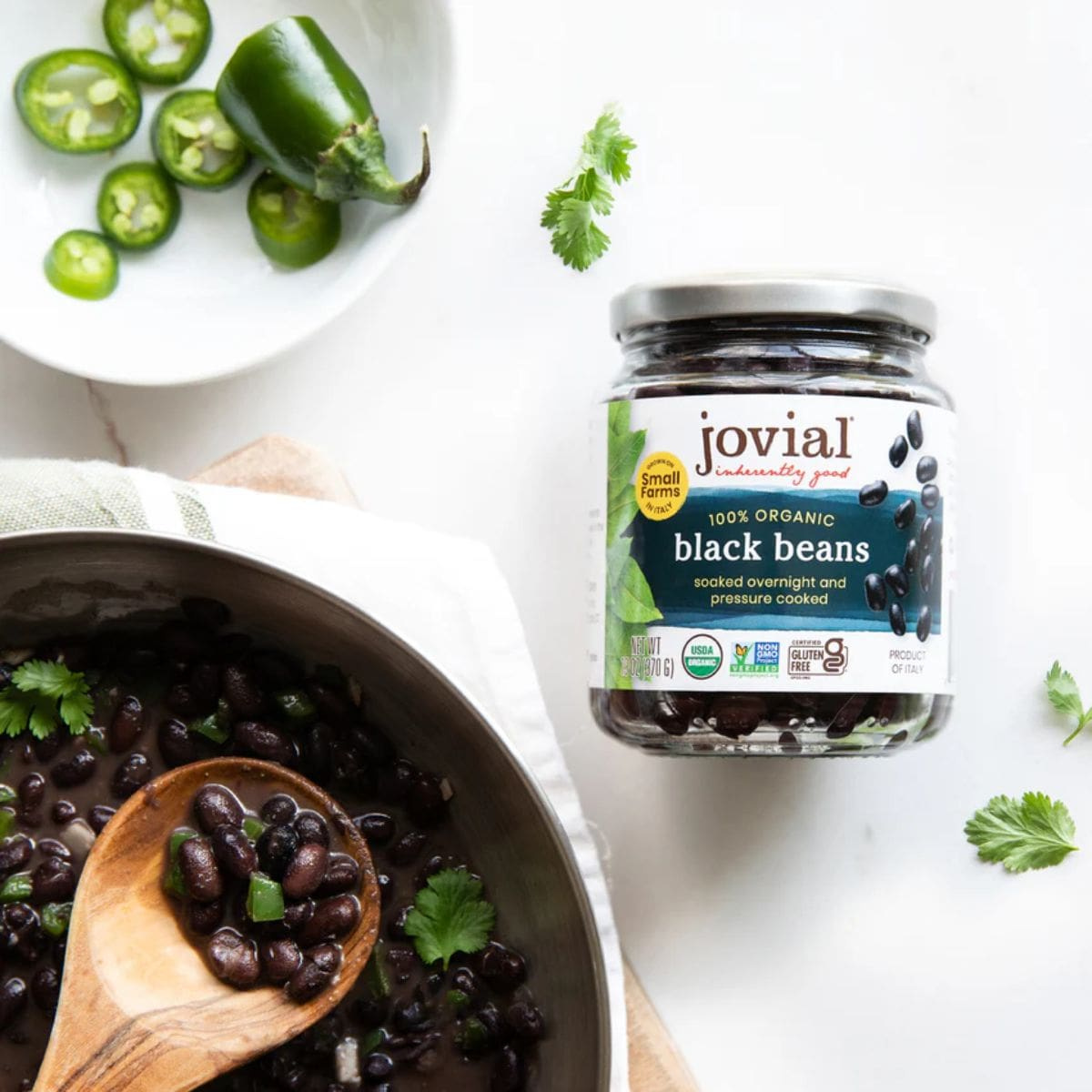 The secret behind Jovial’s organic black beans, you ask? They're made with love, care, and a touch of Mediterranean flair! They start by giving these gluten-free beans a luxurious overnight soak and then pressure-cooked them to perfection with a sprinkle of Sicilian sea salt. That means no additives, preservatives, or fillers! Just firm and flavourful canned black beans that are ready to rock any recipe you throw at them. From hearty chilis to velvety-smooth dips, mouthwatering burritos to zesty salsas, they’re the secret ingredient that'll elevate all your favourite recipes from "meh" to "muy delicioso"!