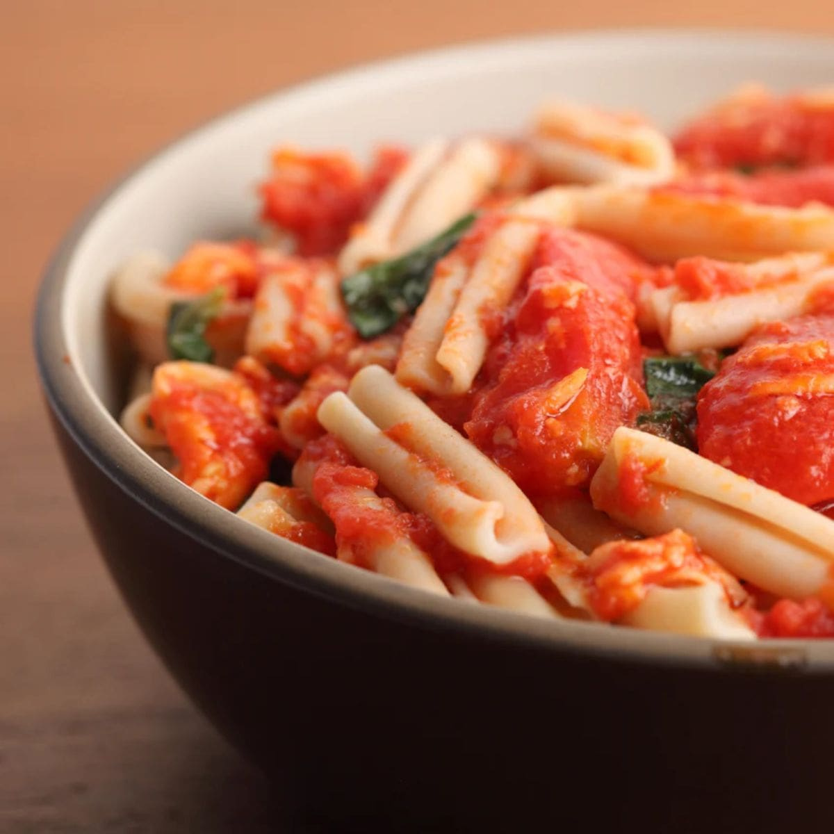 Jovial's organic gluten-free brown rice casarecce is the perfect shape–with each bite, the folded shape holds all kinds of sauces, seasonings, and condiments for a delicious explosion of flavour. But it also has a modern twist: it's made with organic brown rice for a delicious gluten-free pasta that has the same taste and texture as traditional pasta! No compromises here!